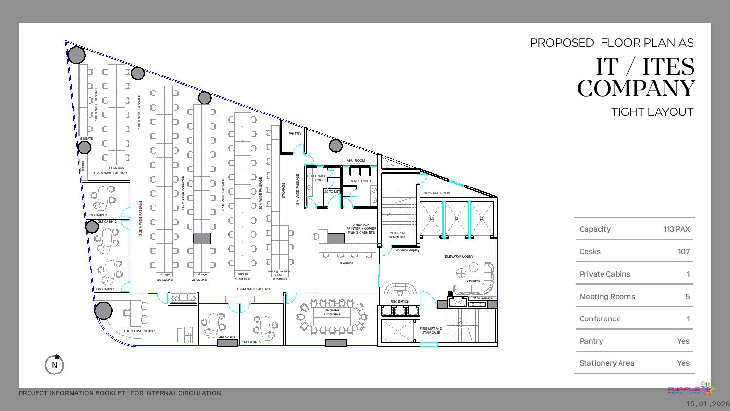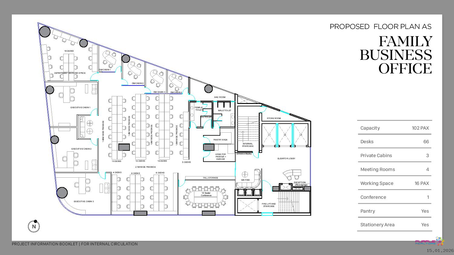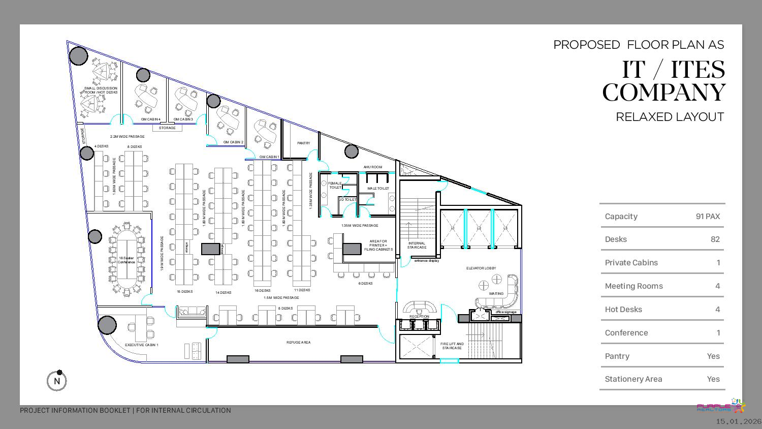 High efficiency tower with 15 STOREYS Recreational Spaces and breakout zones at