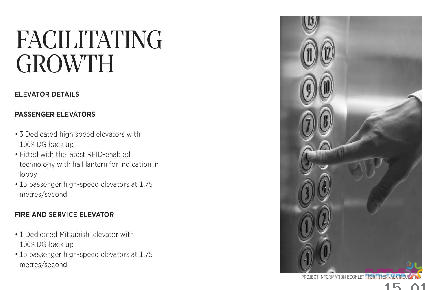 • 15 passenger high-speed elevators at 1.75