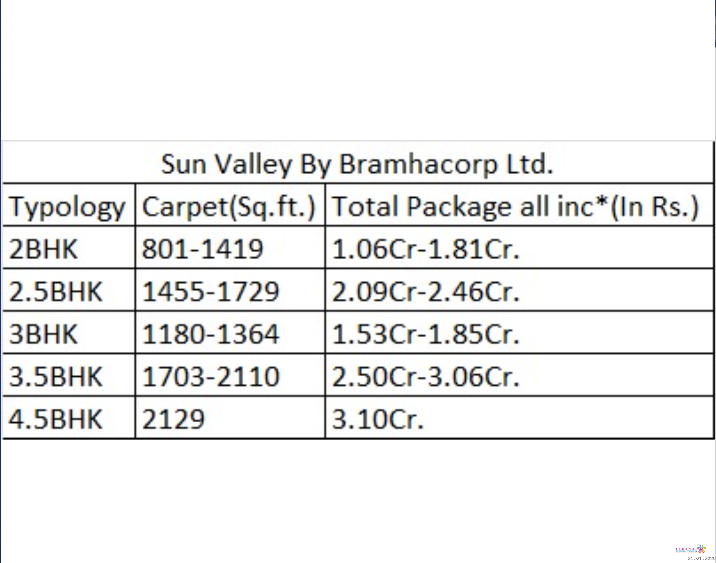 3.5 BHK - Carpet 1703 to 2110 sqft - 2.50cr Onwards