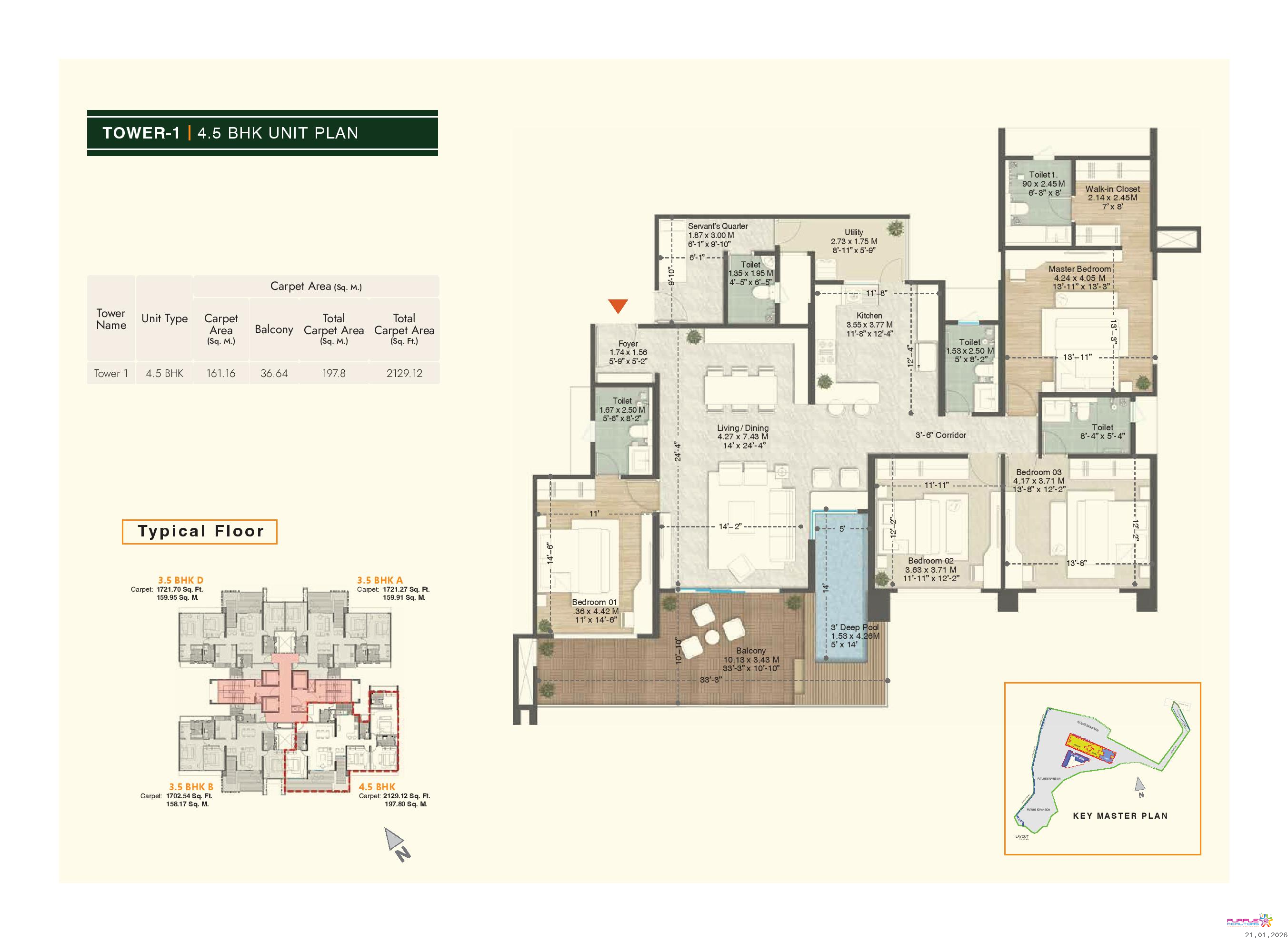 4.5 BHK - Carpet 2129 sqft - 3.10cr Onwards