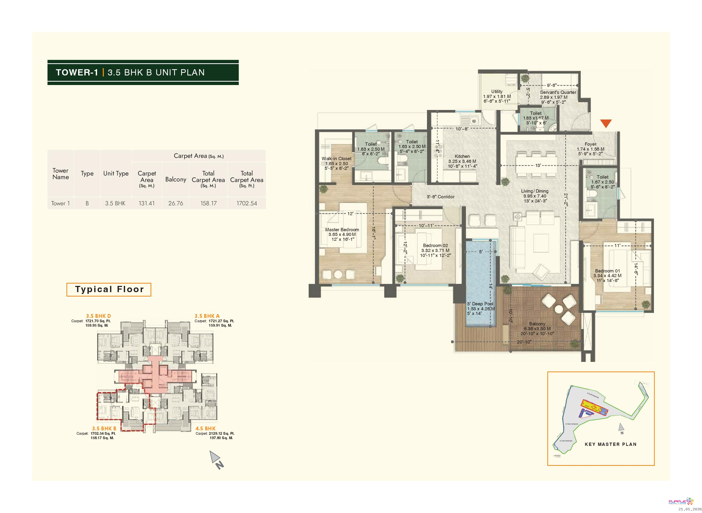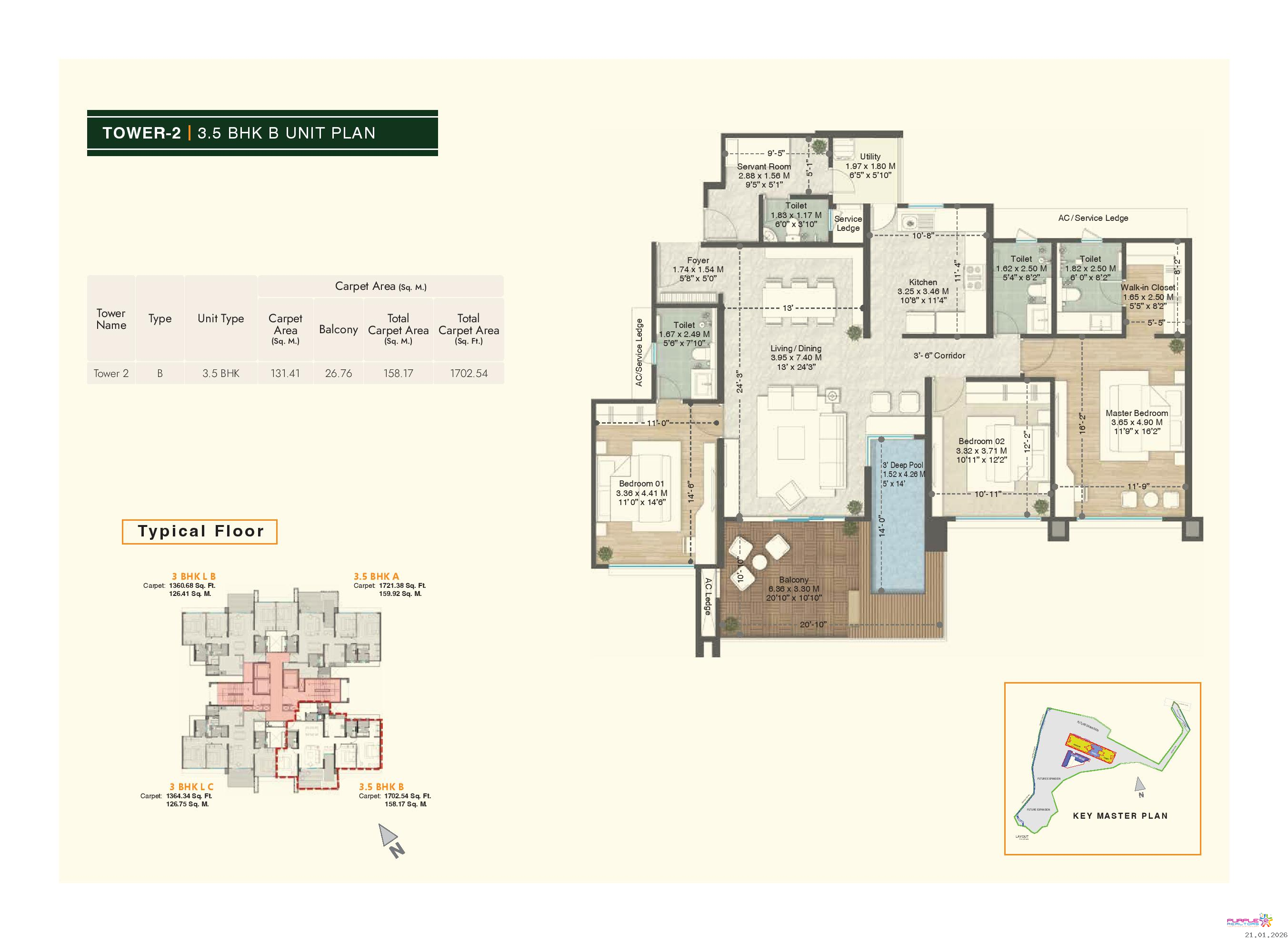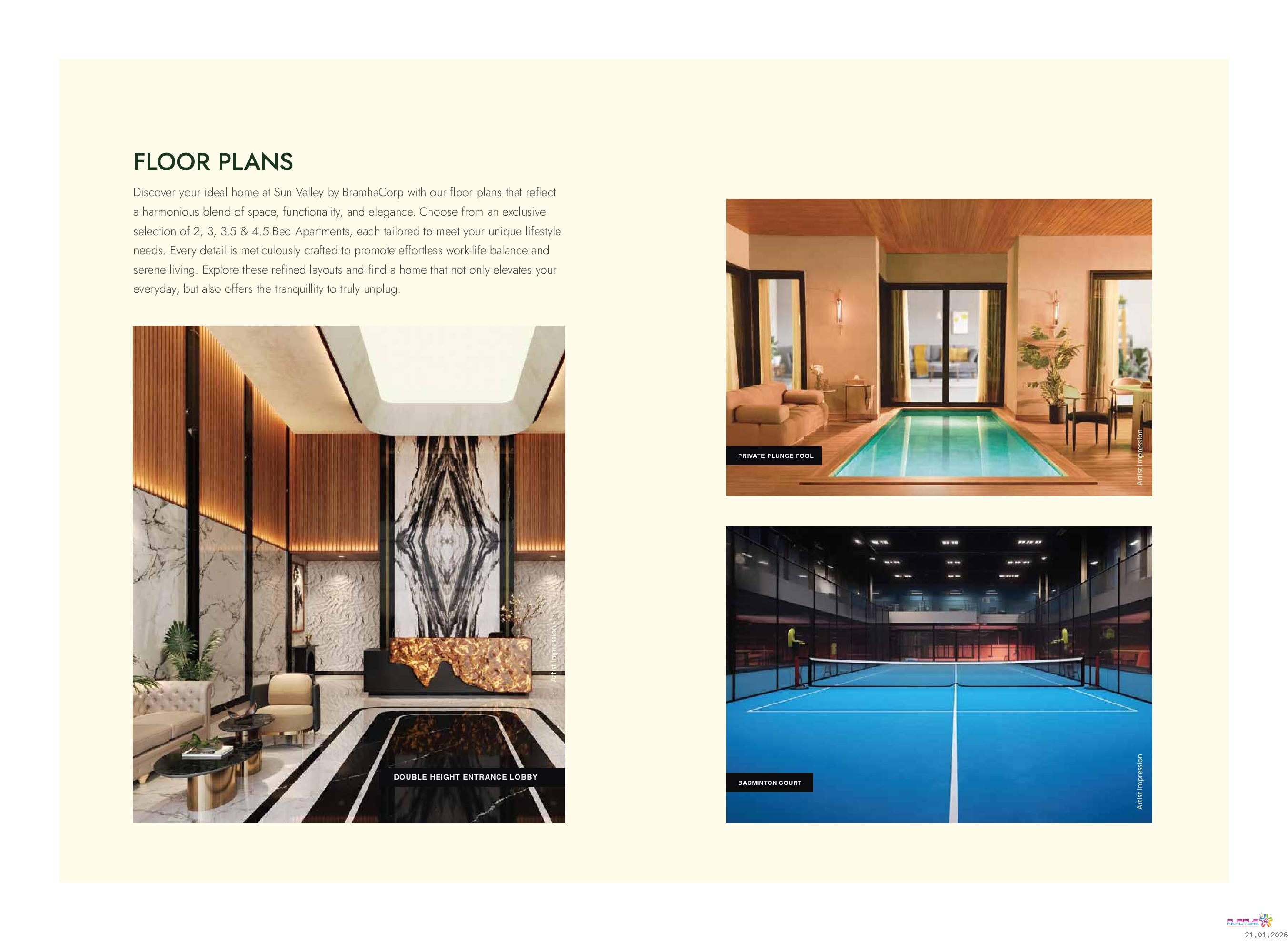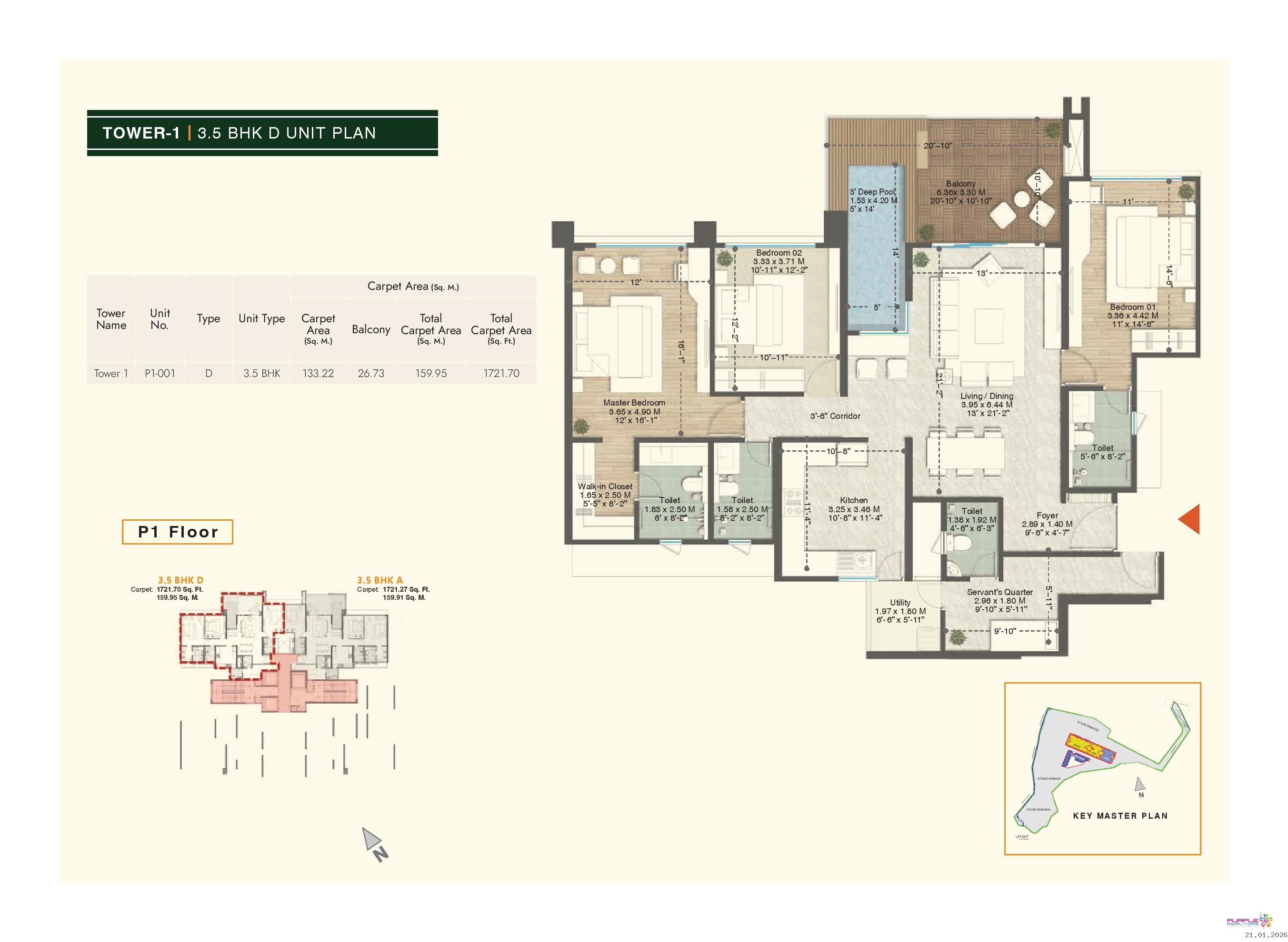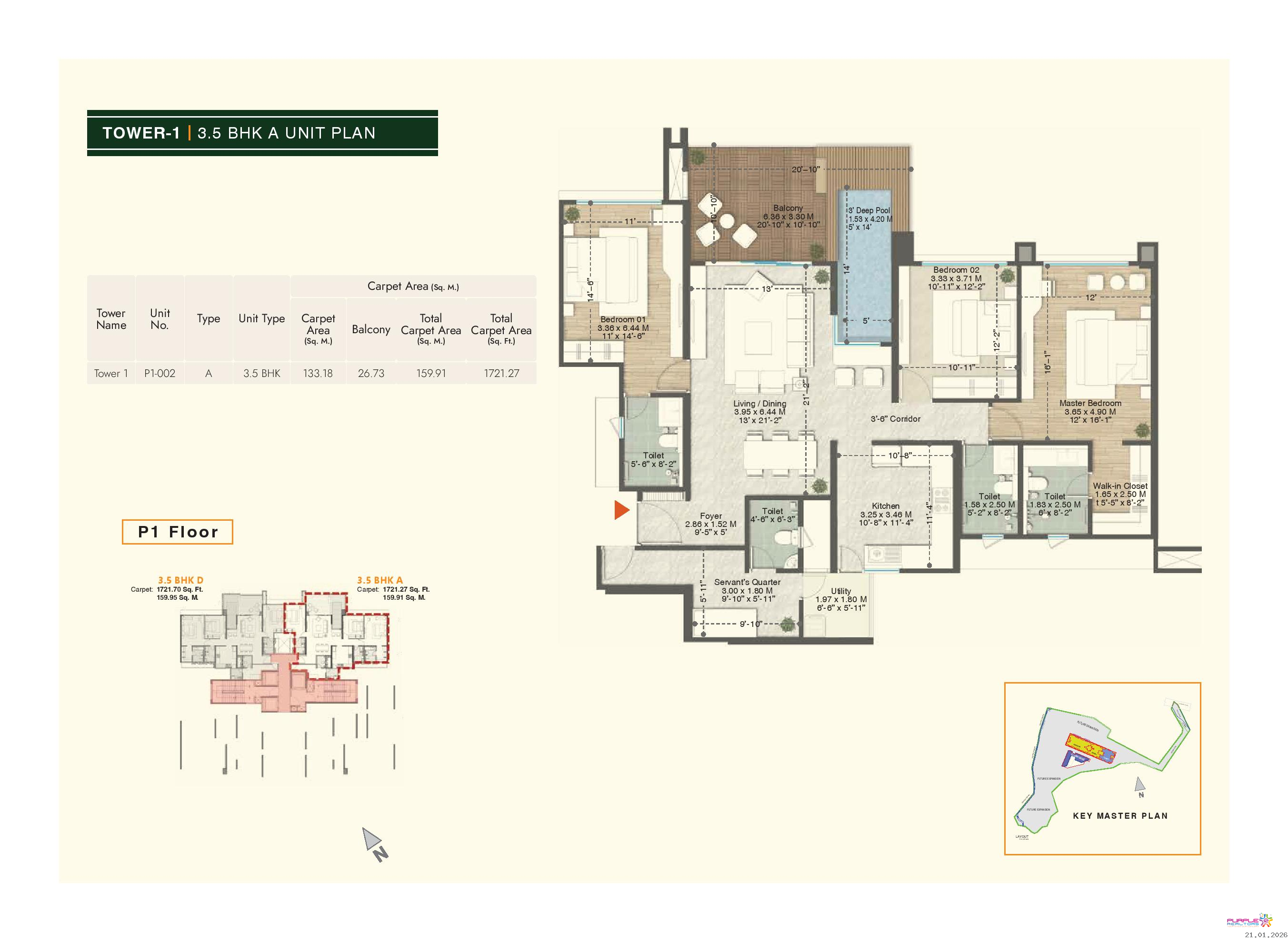 • Plunge pool for 4.5 BHK & 3.5 BHK (Type A, B, D) apartments in Tower 1