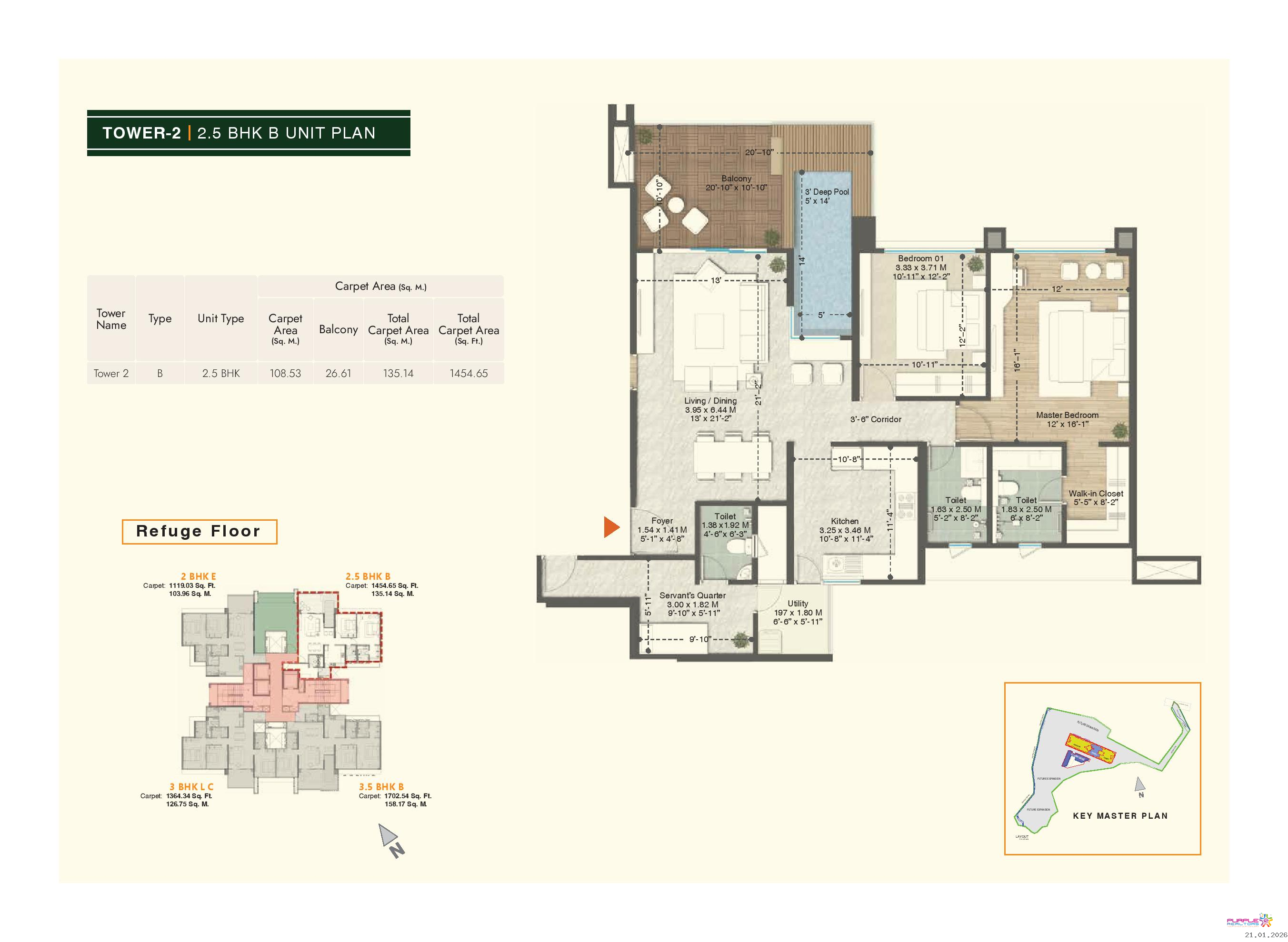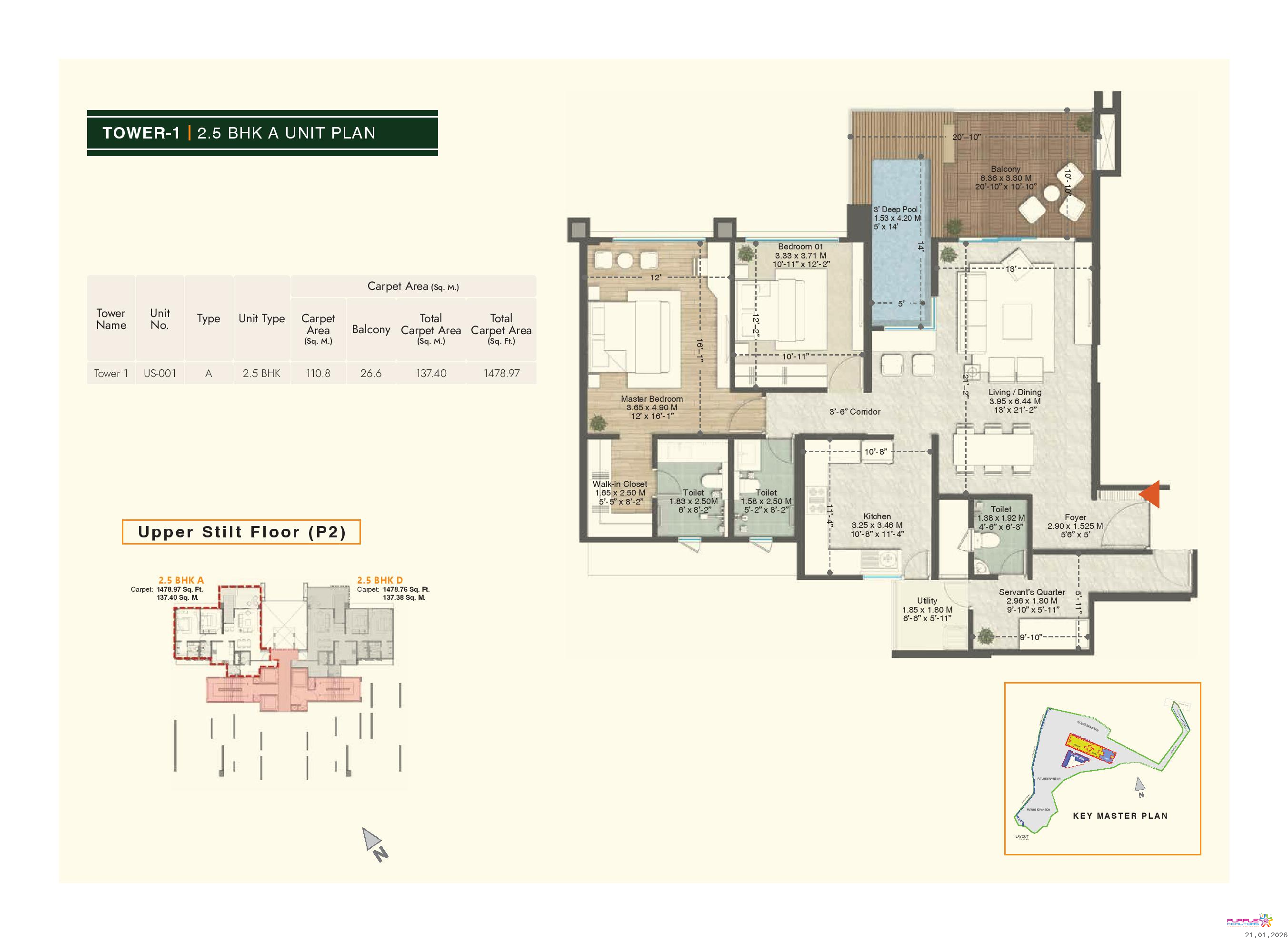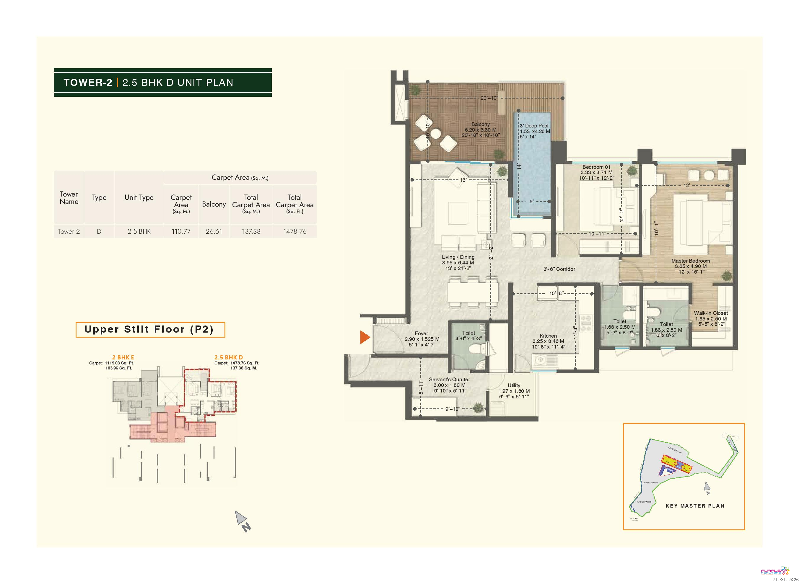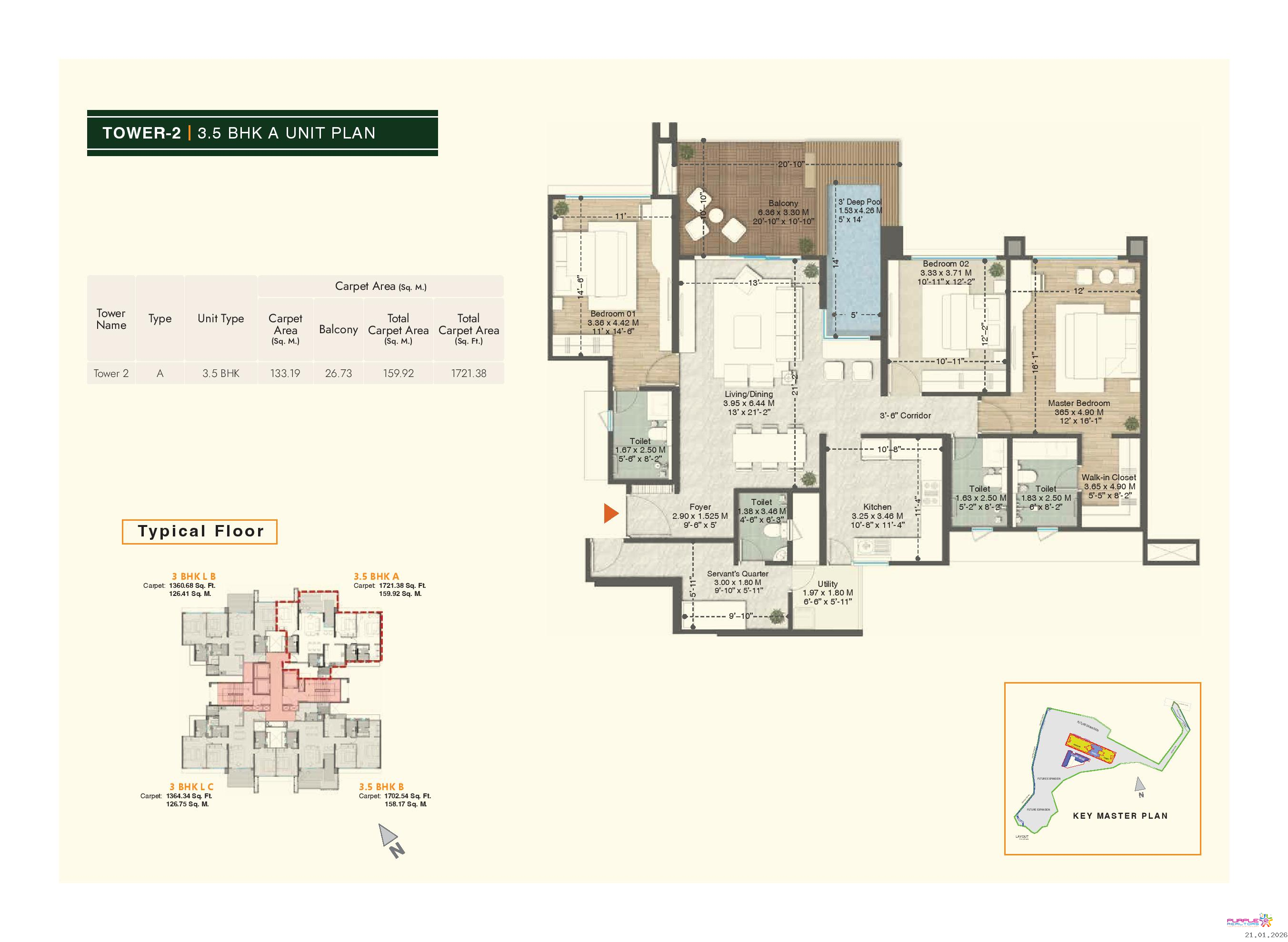 • Plunge pool for 4.5 BHK & 3.5 BHK (Type A, B, D) apartments in Tower 1