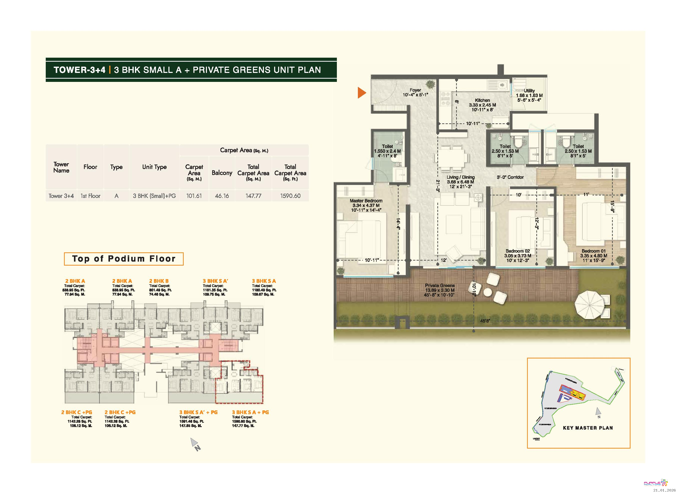3 BHK - Carpet 1180 to 1364 sqft - 1.53cr Onwards