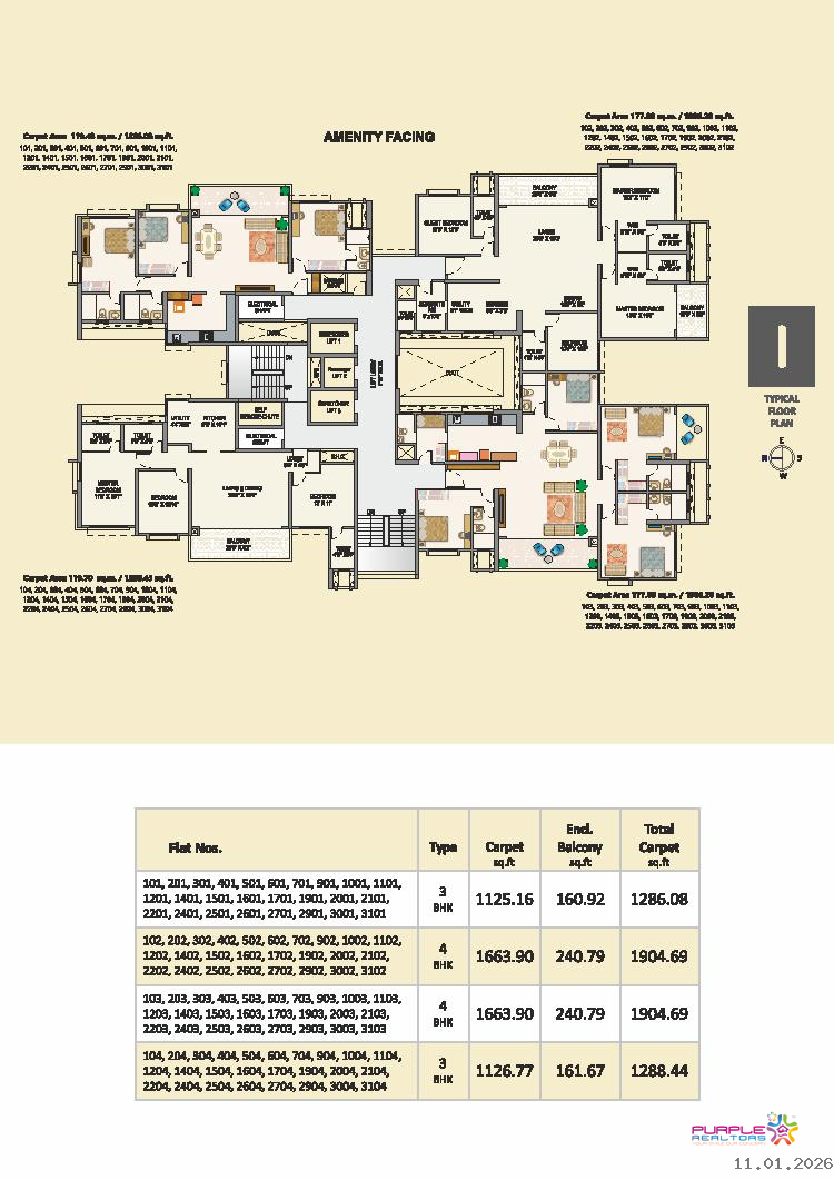 3 BHK - Carpet 1208 to 1286 sqft - 1.73 cr Onwards