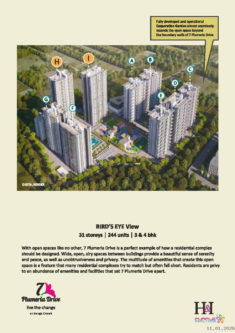 WELCOME! to 7 Plumeria Drive, West Pune’s best residential development – a project that has inspired imitators and garnered a legion of fans.With almost 400 families already residing here and 5-star amenities in use, 7PD delivers a lifestyle that sets the benchmark for many others.We are now launching the H&I buildings, the final phase of 7PD, where perfection meets its highest level!