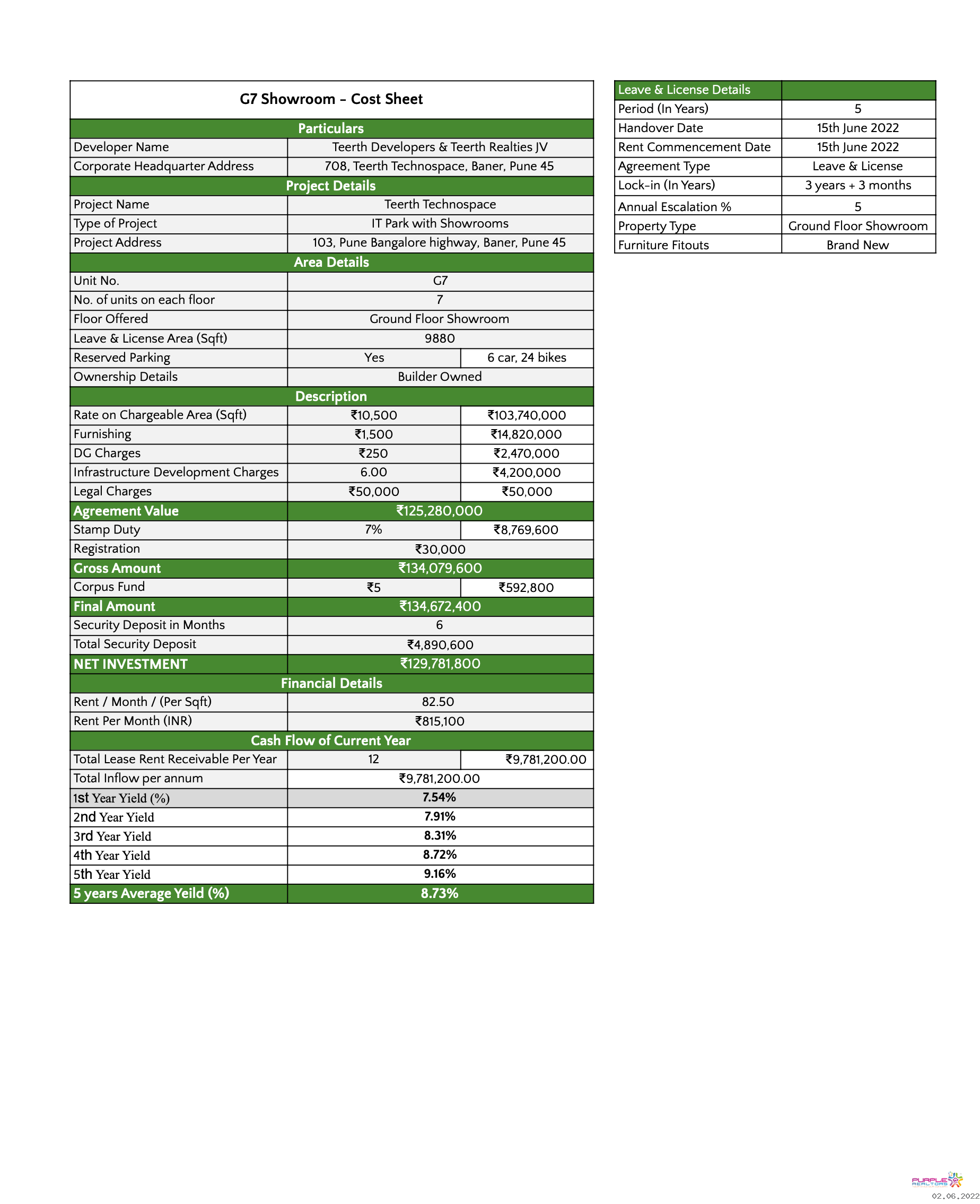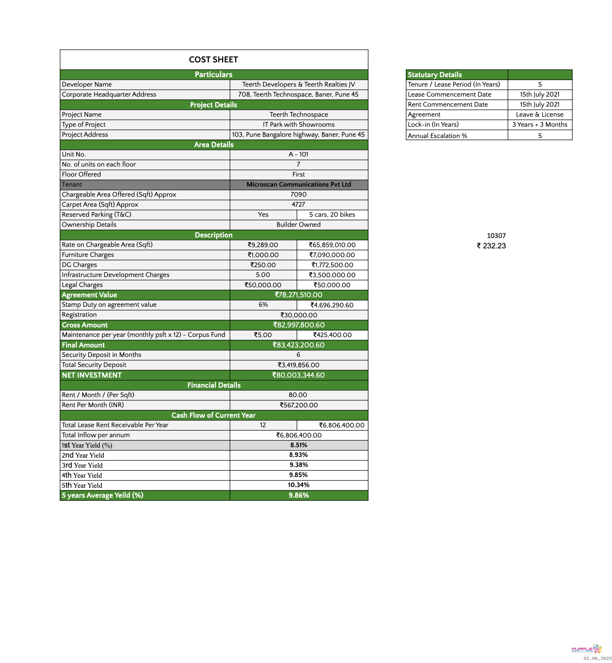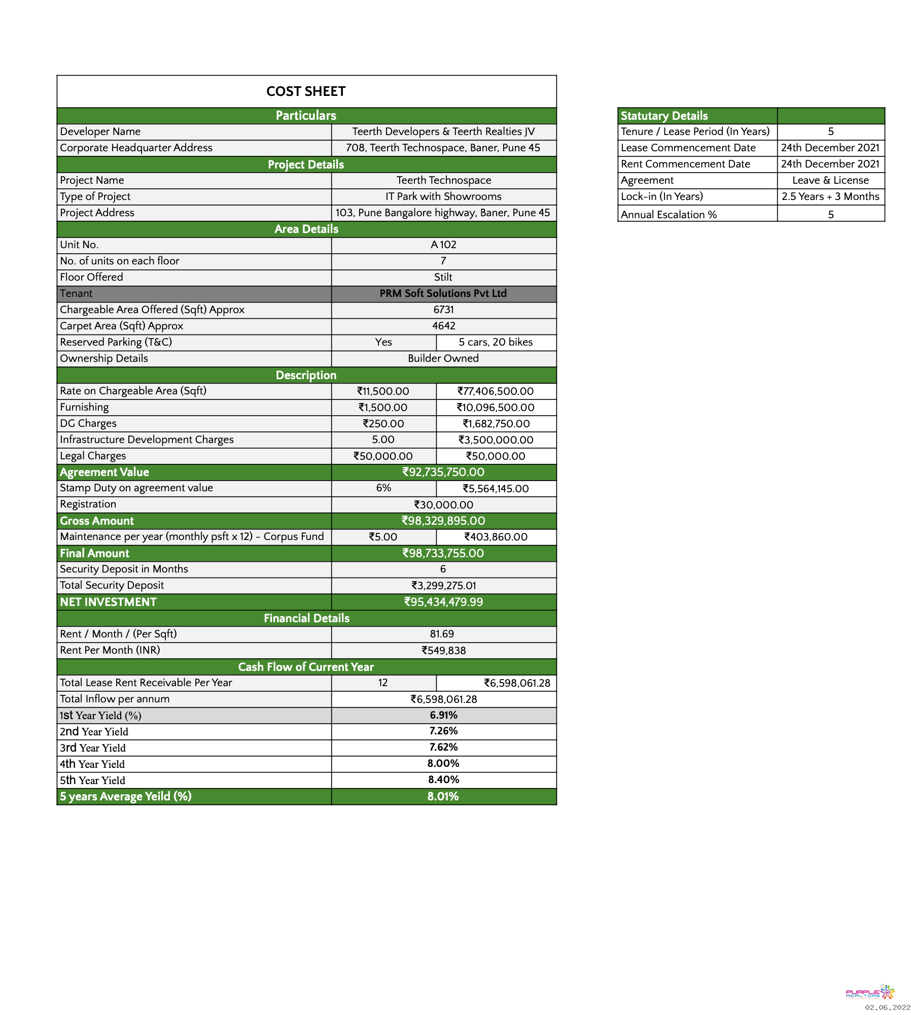 For more details about Pre Leased check Cost Sheet Section
