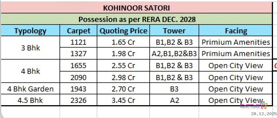 | Upcoming Projects | Kohinoor Satori Mahalunge 3 BHK 4 BHK Price Location Floor Plan Review
