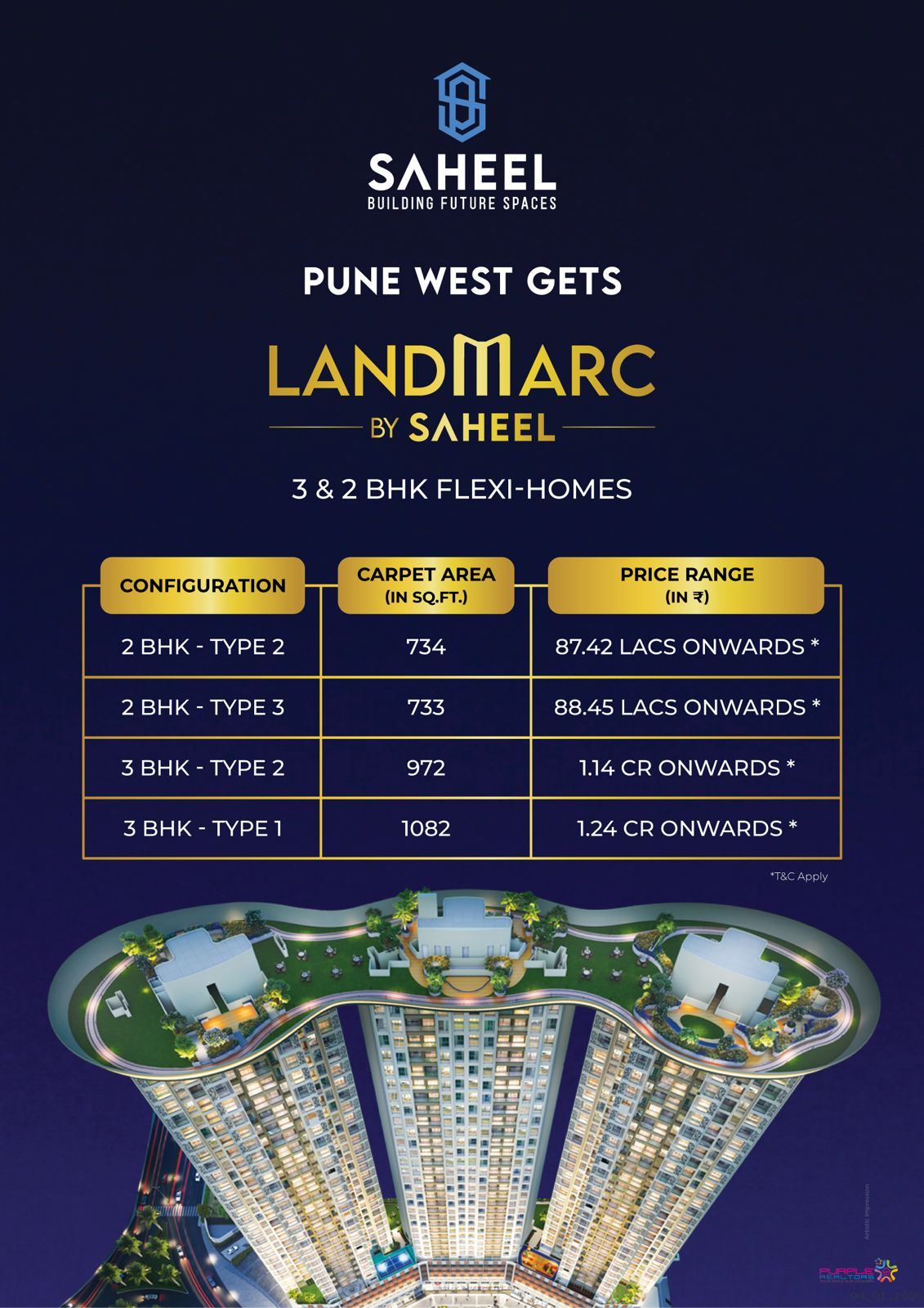 3 BHK – Carpet 972 to 1082 sq.ft. - 1.14 cr Onwards