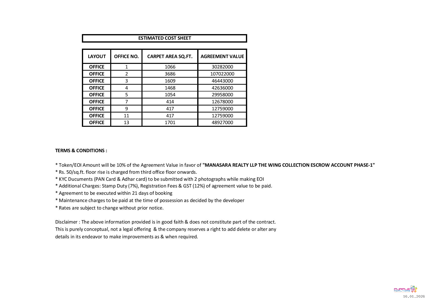 Office Spaces - Carpet 414 to 3686 sqft - 1.26cr Onwards