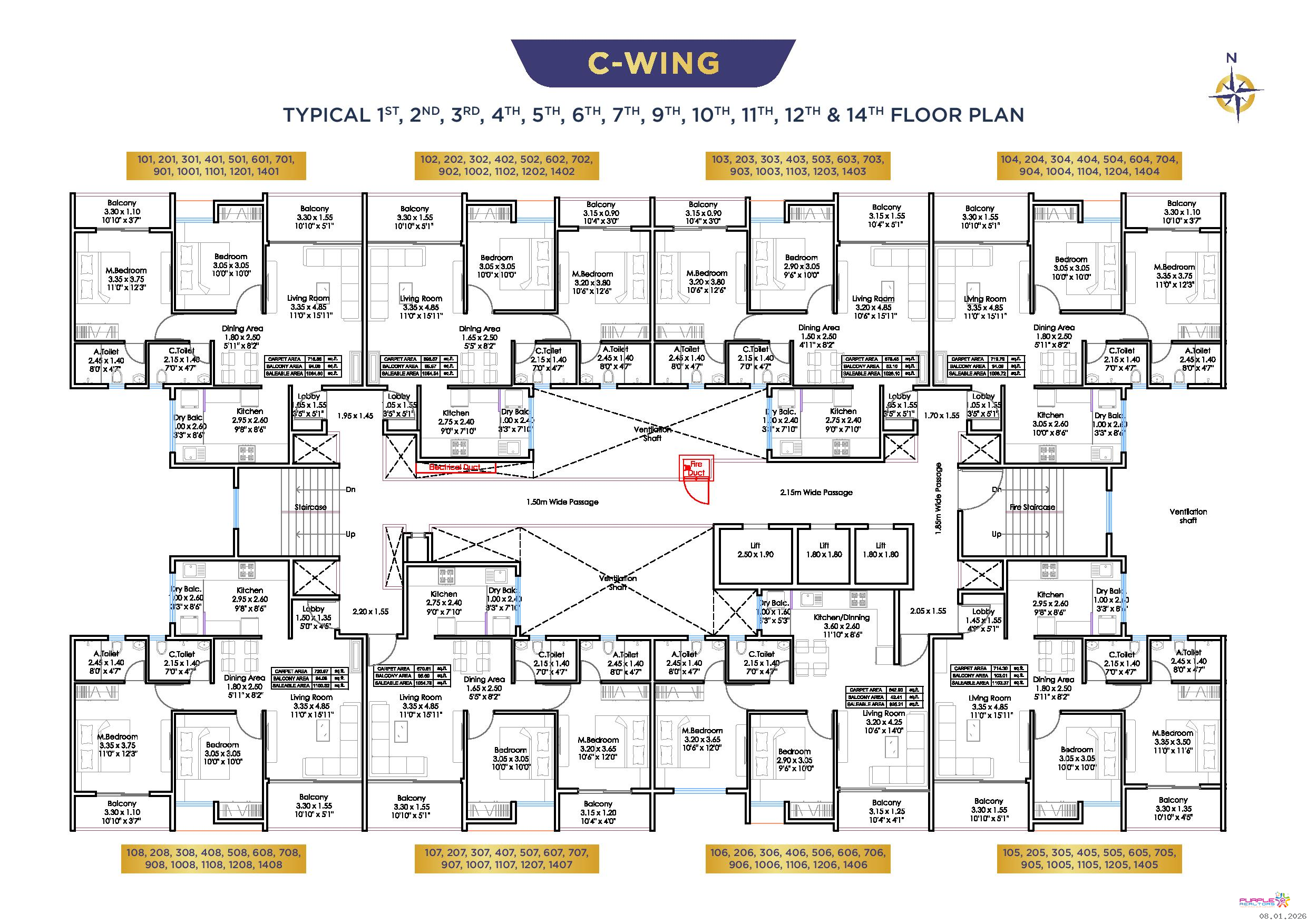 3 BHK - Carpet 1130 to 1136 sqft - 1.23cr Onwards