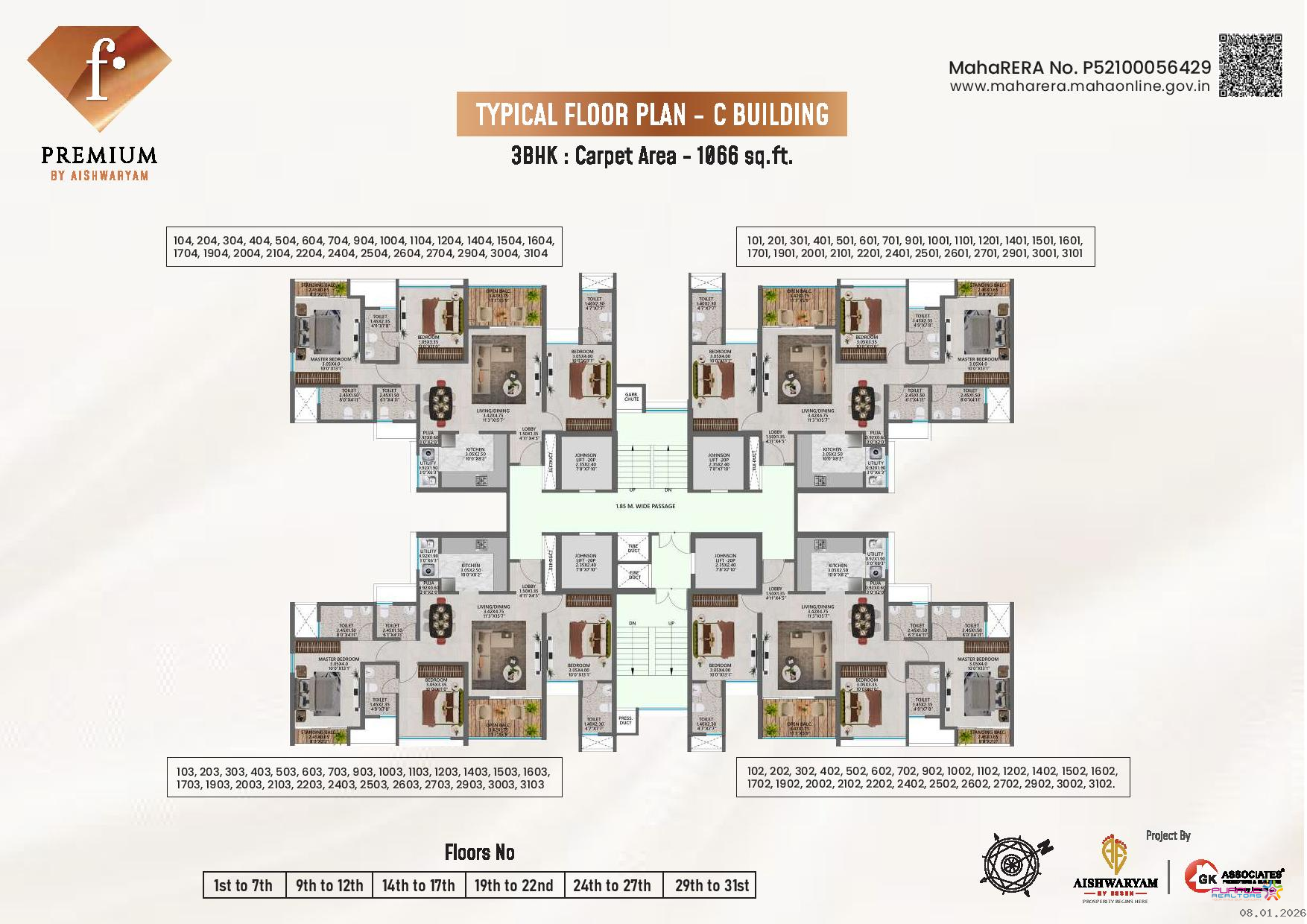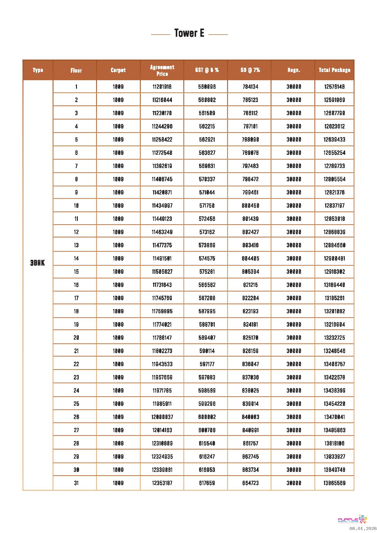 Tower E - 3BHK : Carpet 1010 sqft - 1.20 cr Onwards
