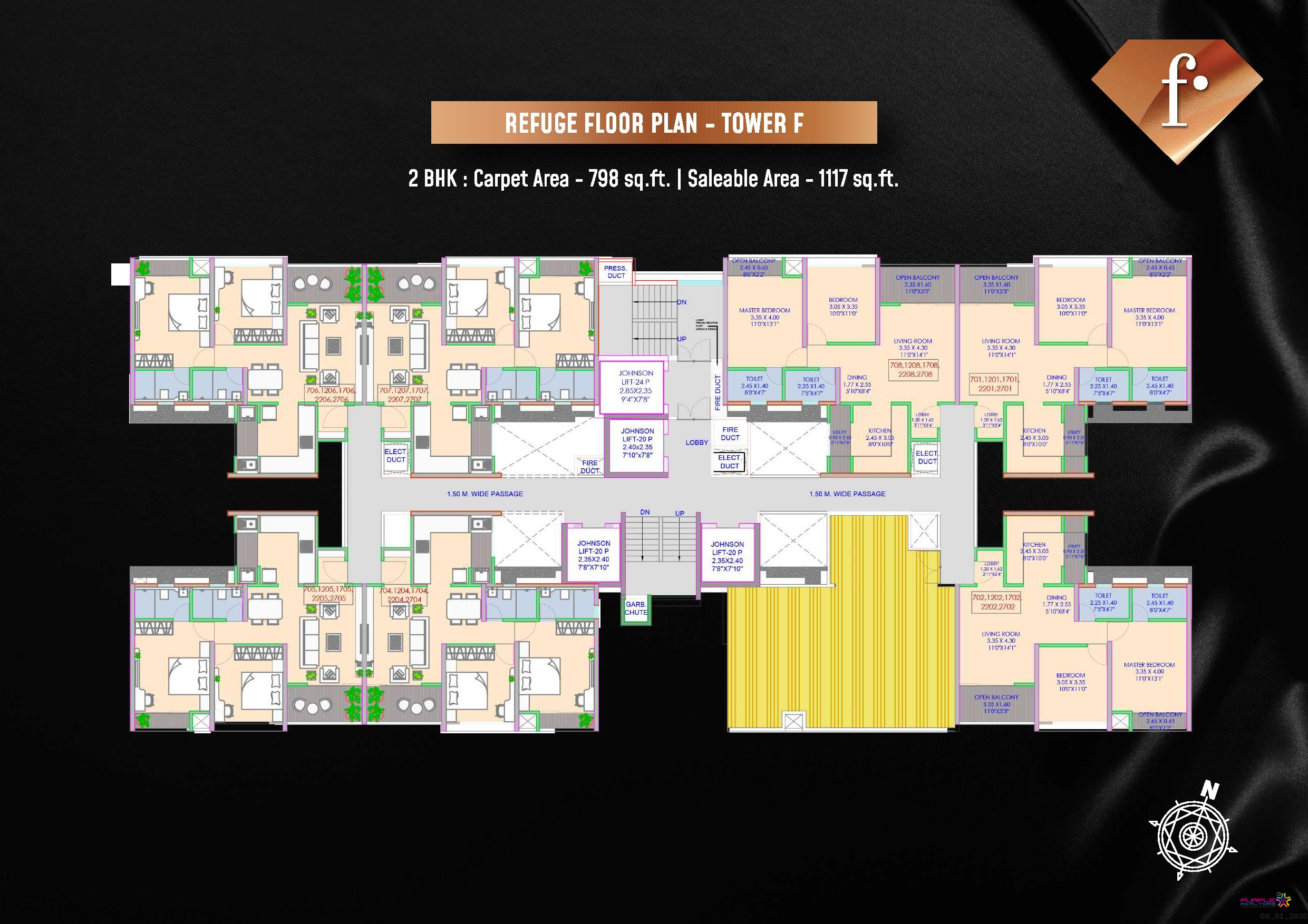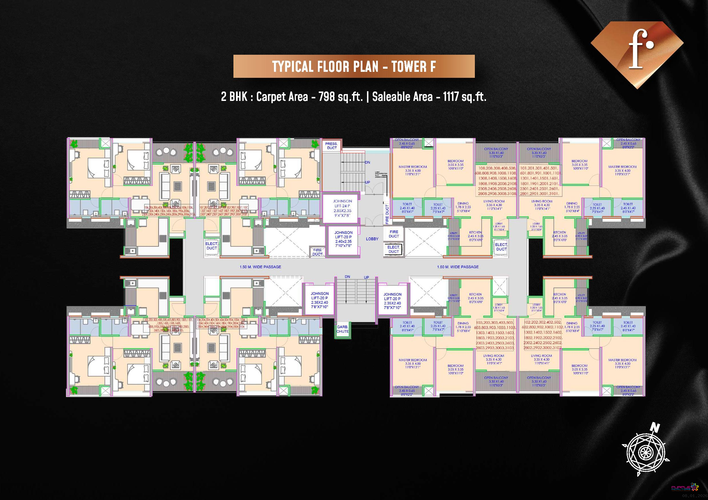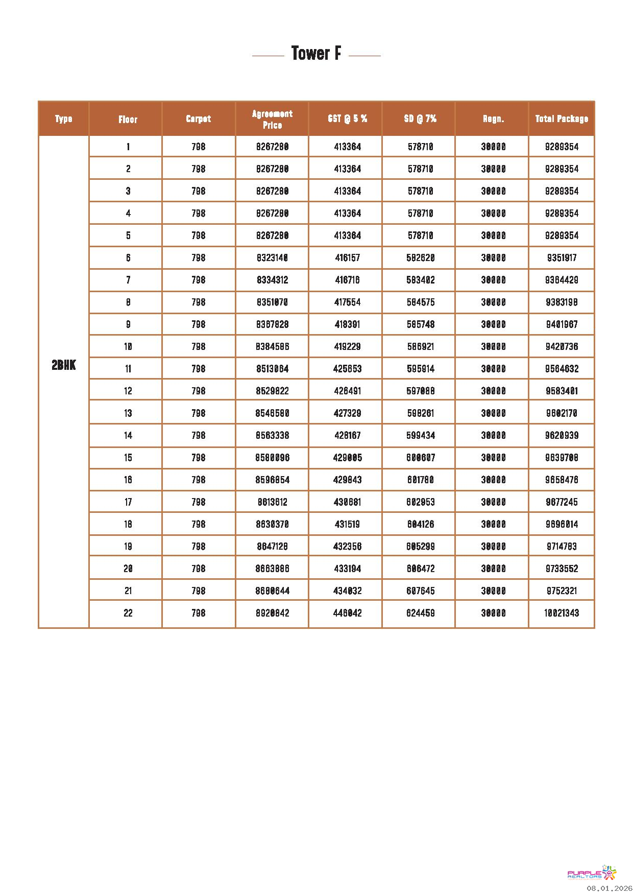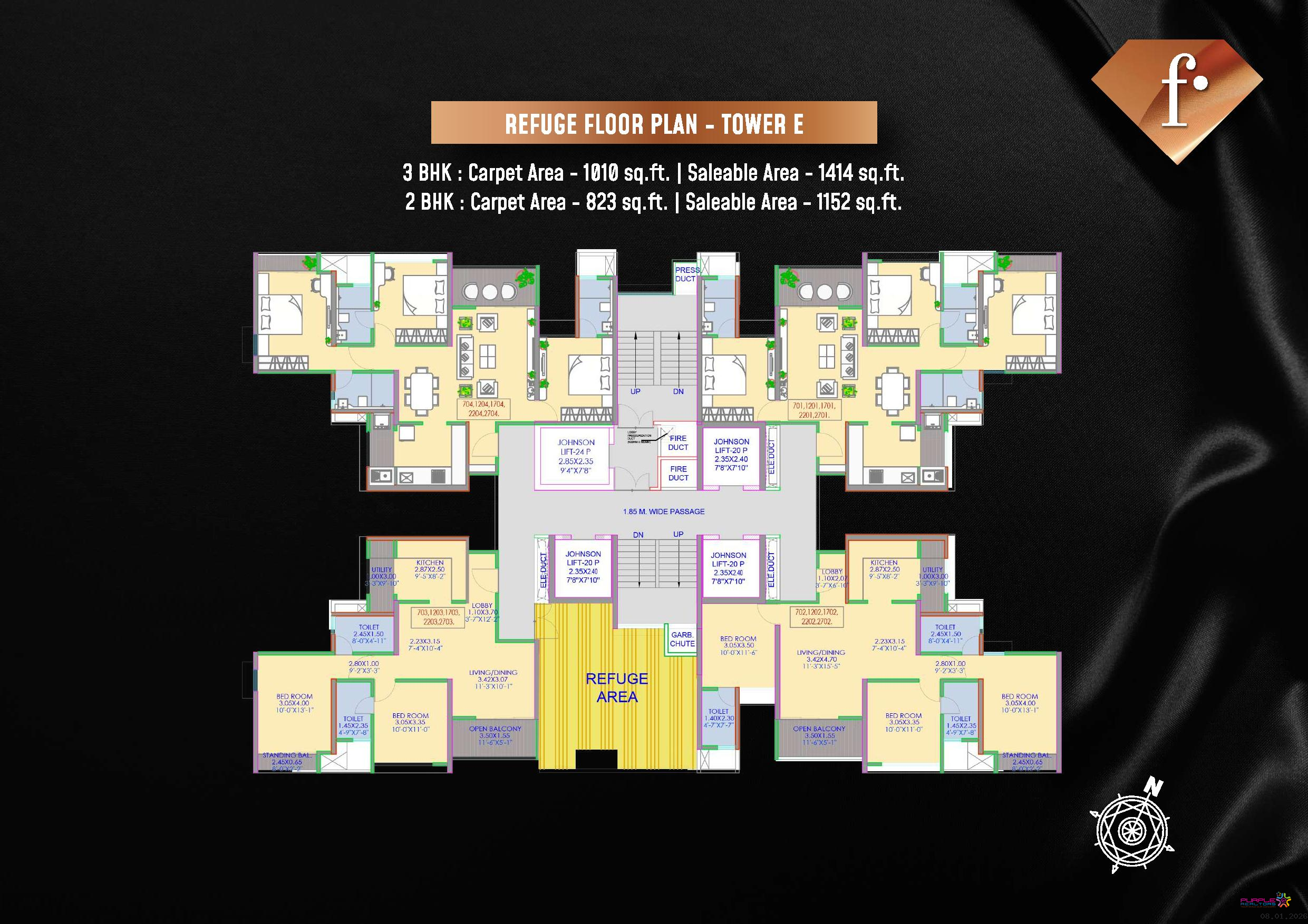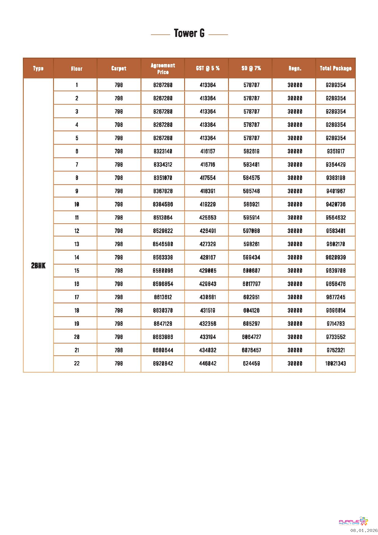 Tower F and G - 2BHK : Carpet 798 sqft - 90 Lac Onwards