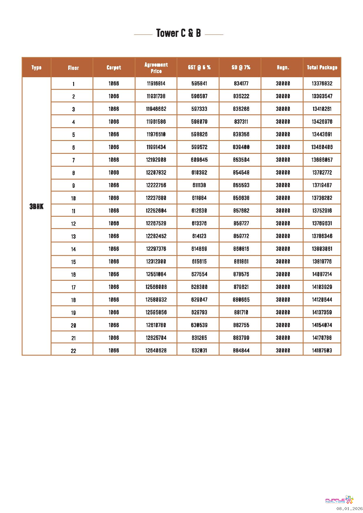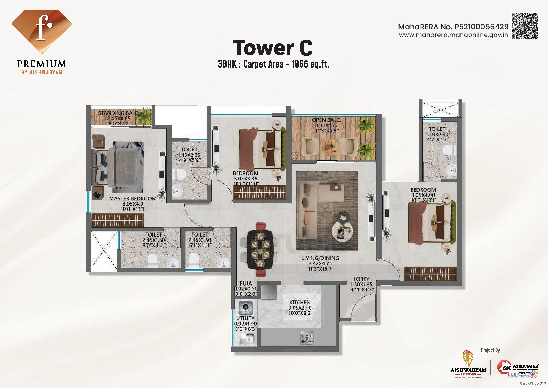 Tower B and C - 3BHK : Carpet 1066 sqft - 1.32 cr Onwards