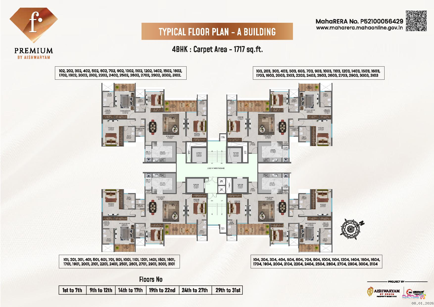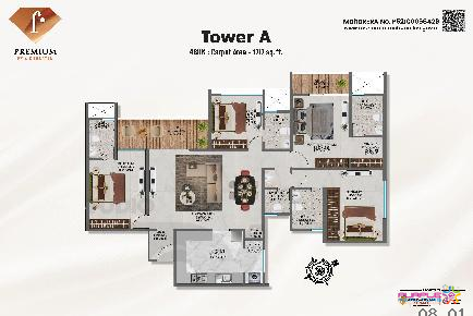 Tower A - 4BHK : Carpet 1717 sqft - 2.10cr Onwards