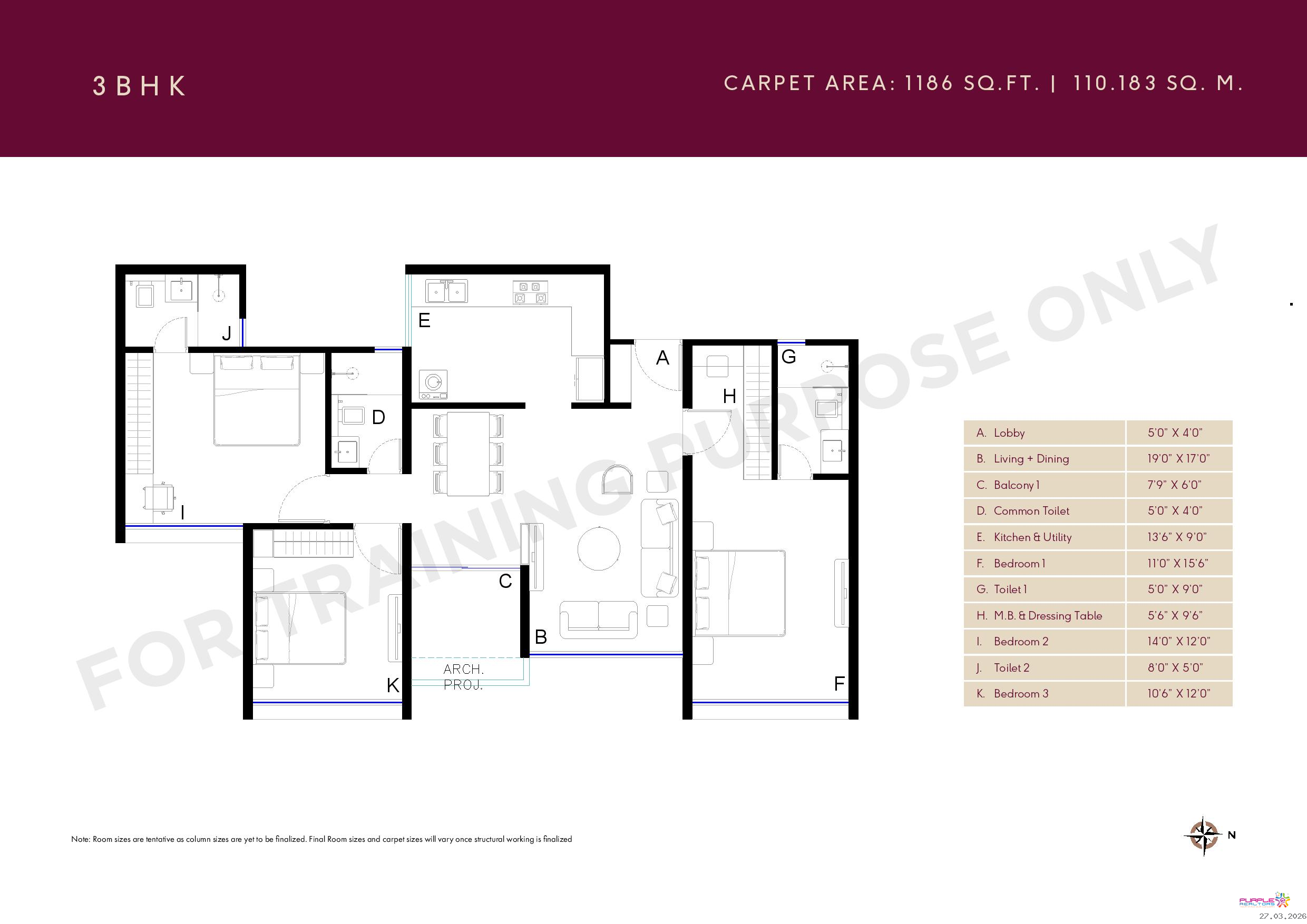 3 BHK - Carpet 1186 Sqft - 2.10cr Onwards