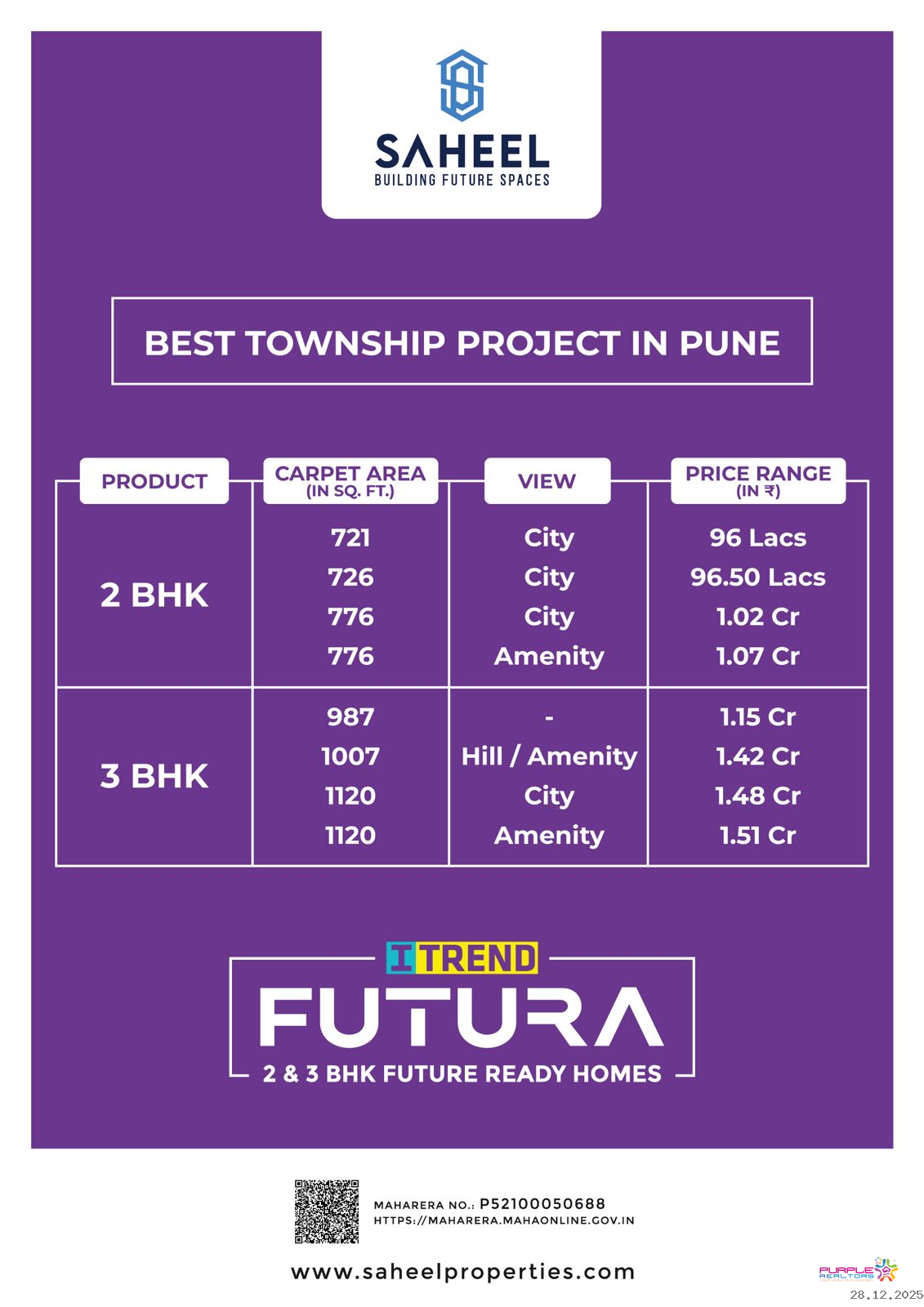 Itrend Futura by Highpoint Landmark LLP ( RERA No P52100050688 ) Mahalunge Pune 2 BHK 3 BHK