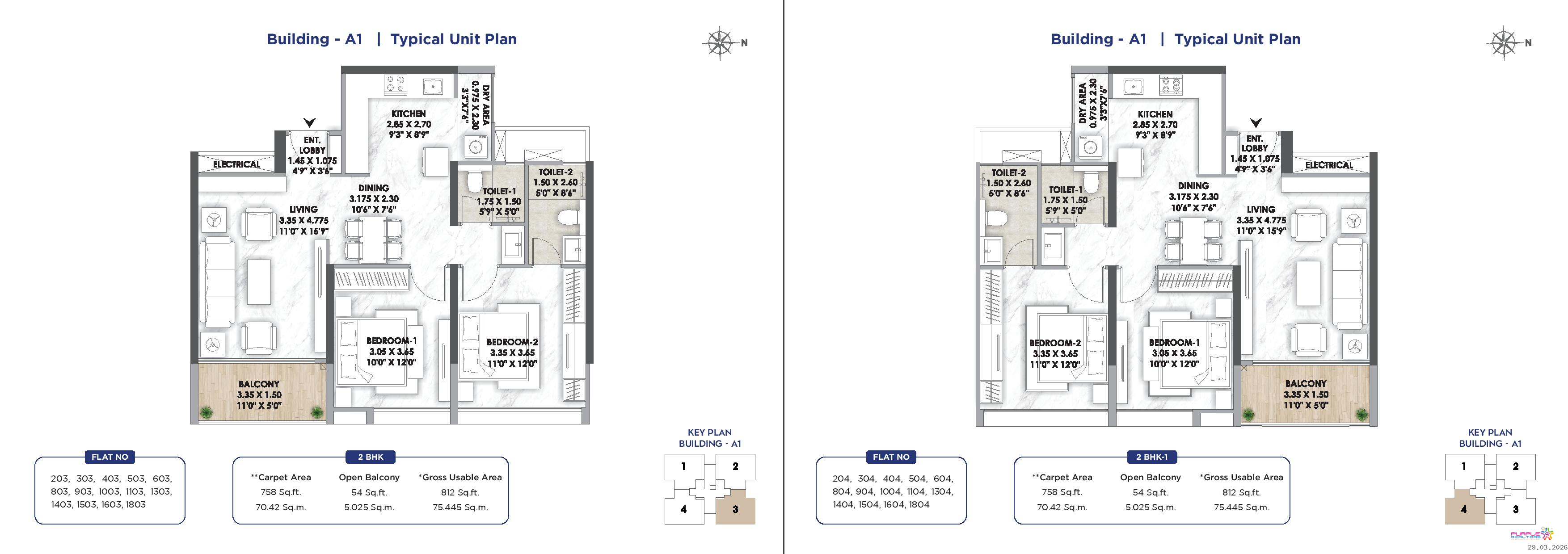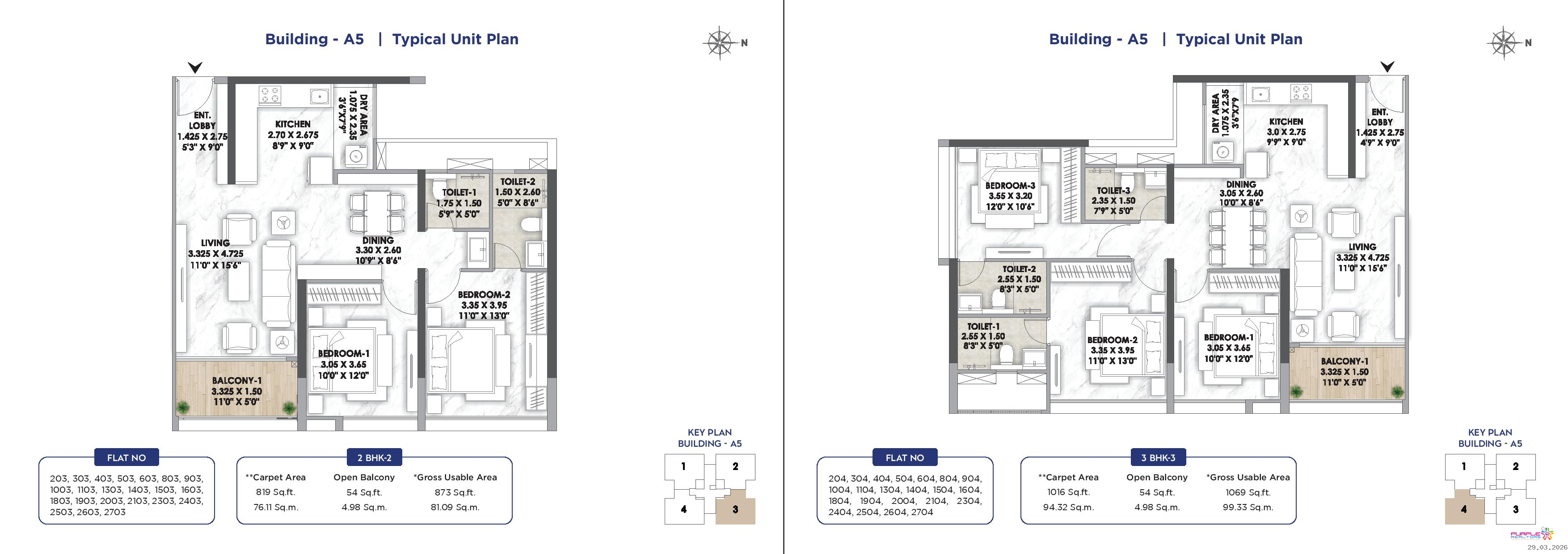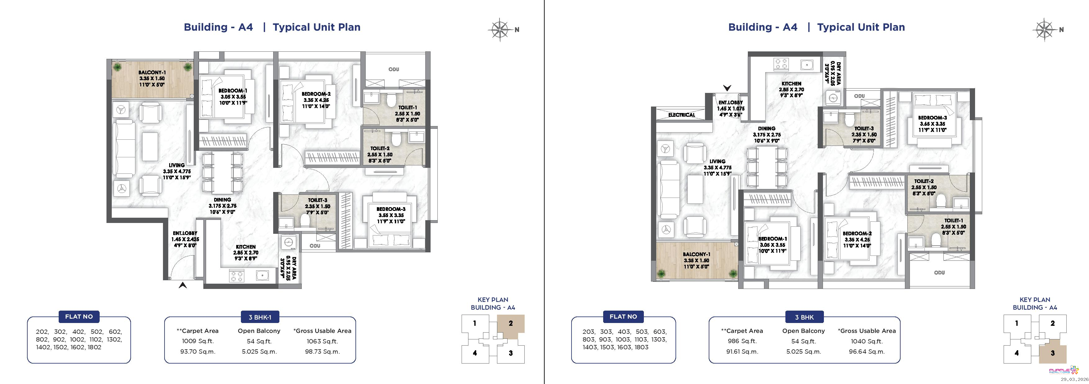 3 BHK - Carpet 1043 to 1070 sqft - 1.75 Cr Onwards