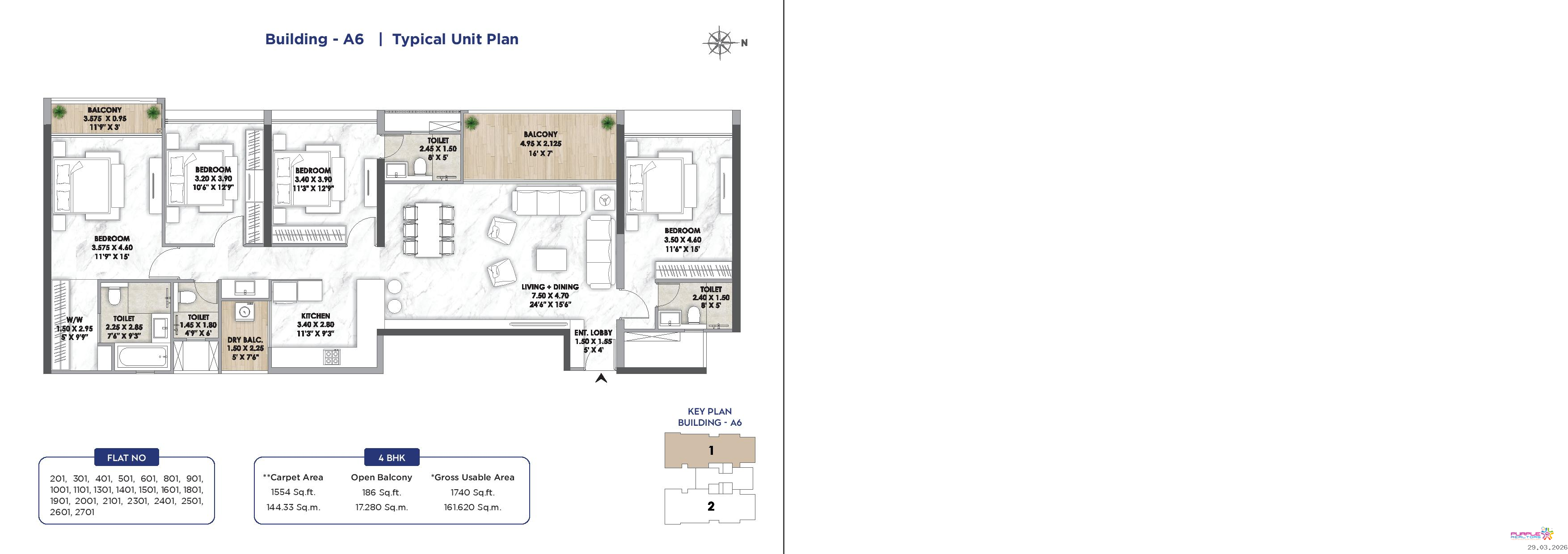 4 BHK - Carpet: 1740 sqft - 2.90 Cr Onwards