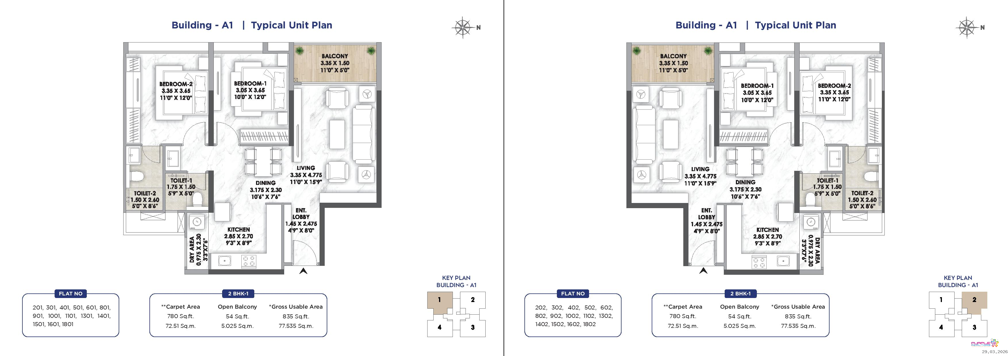 2 BHK - Carpet 834 to 879 sqft -1.28 Cr Onwards