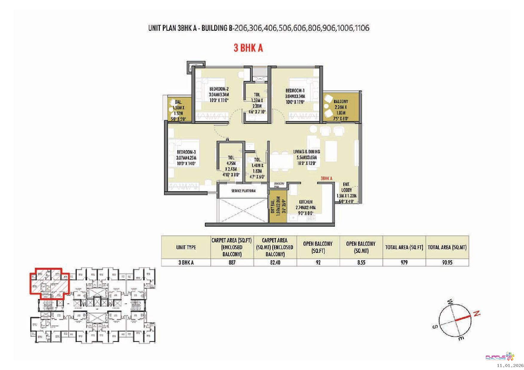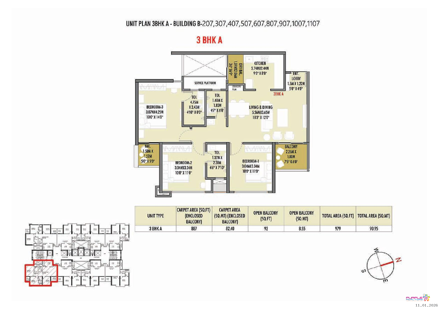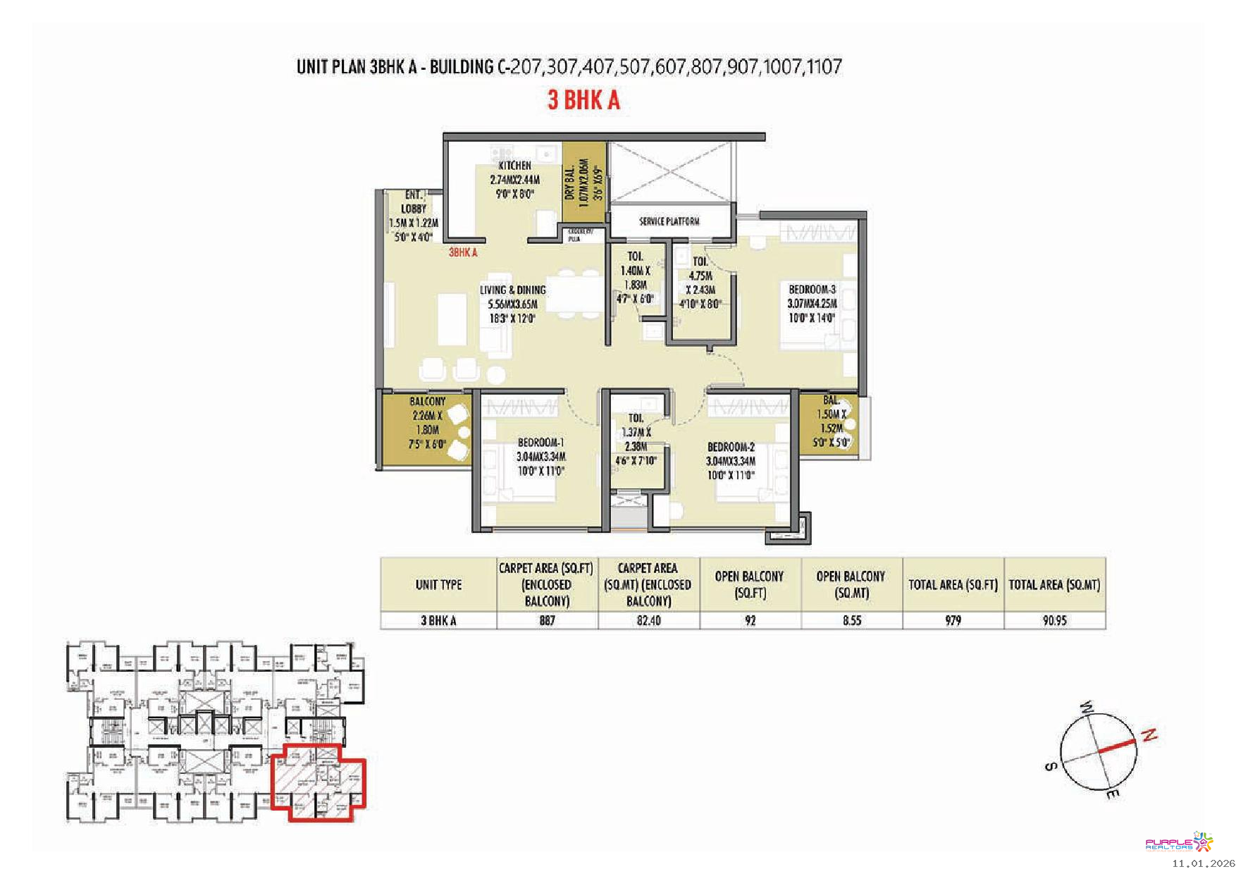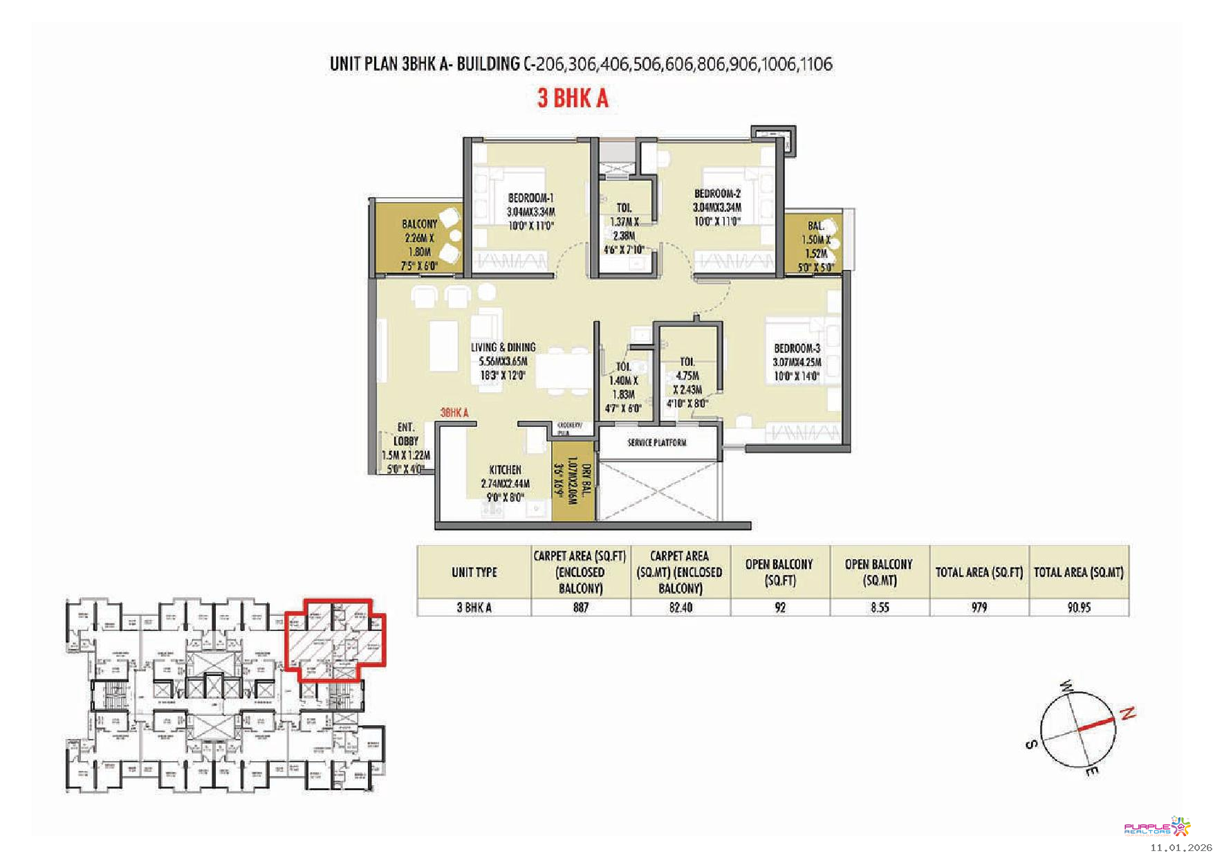 3 BHK - Carpet 979 to 1063 sqft - 1.27 cr Onwards