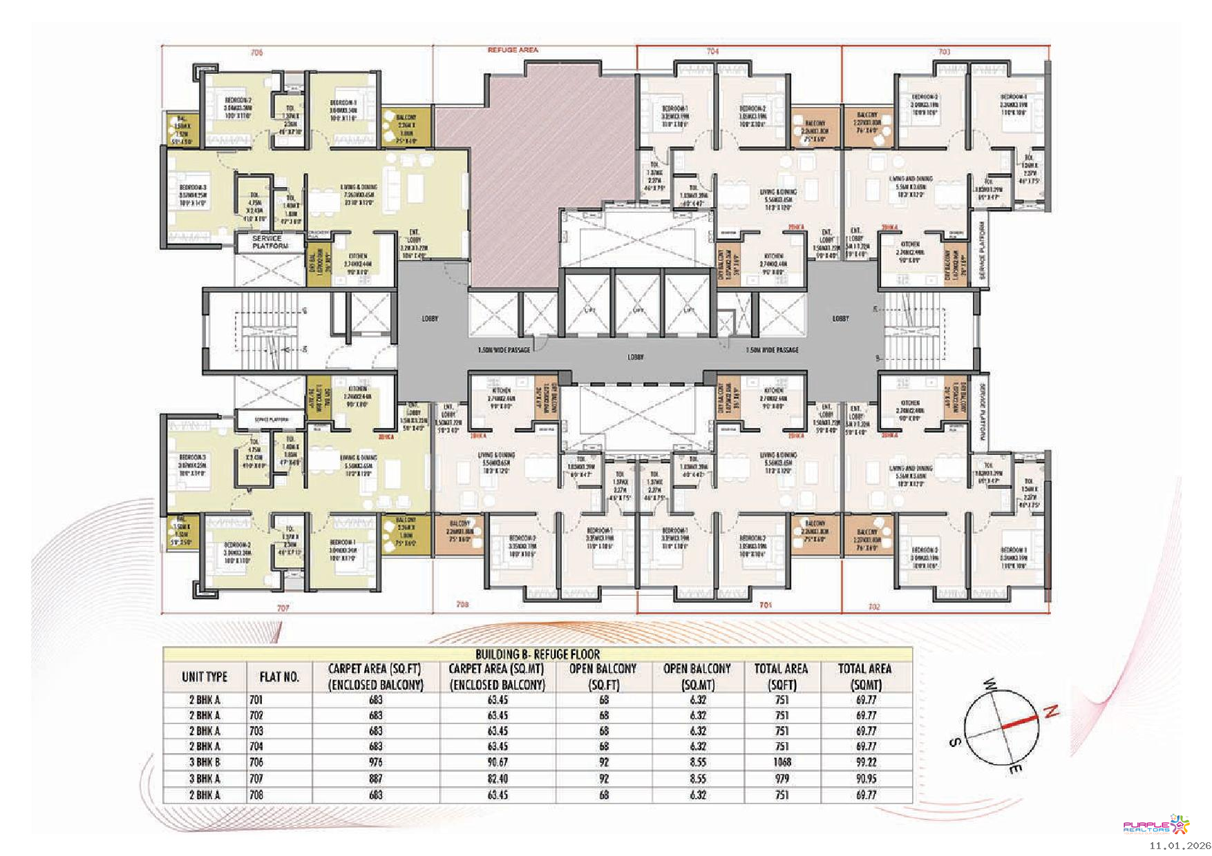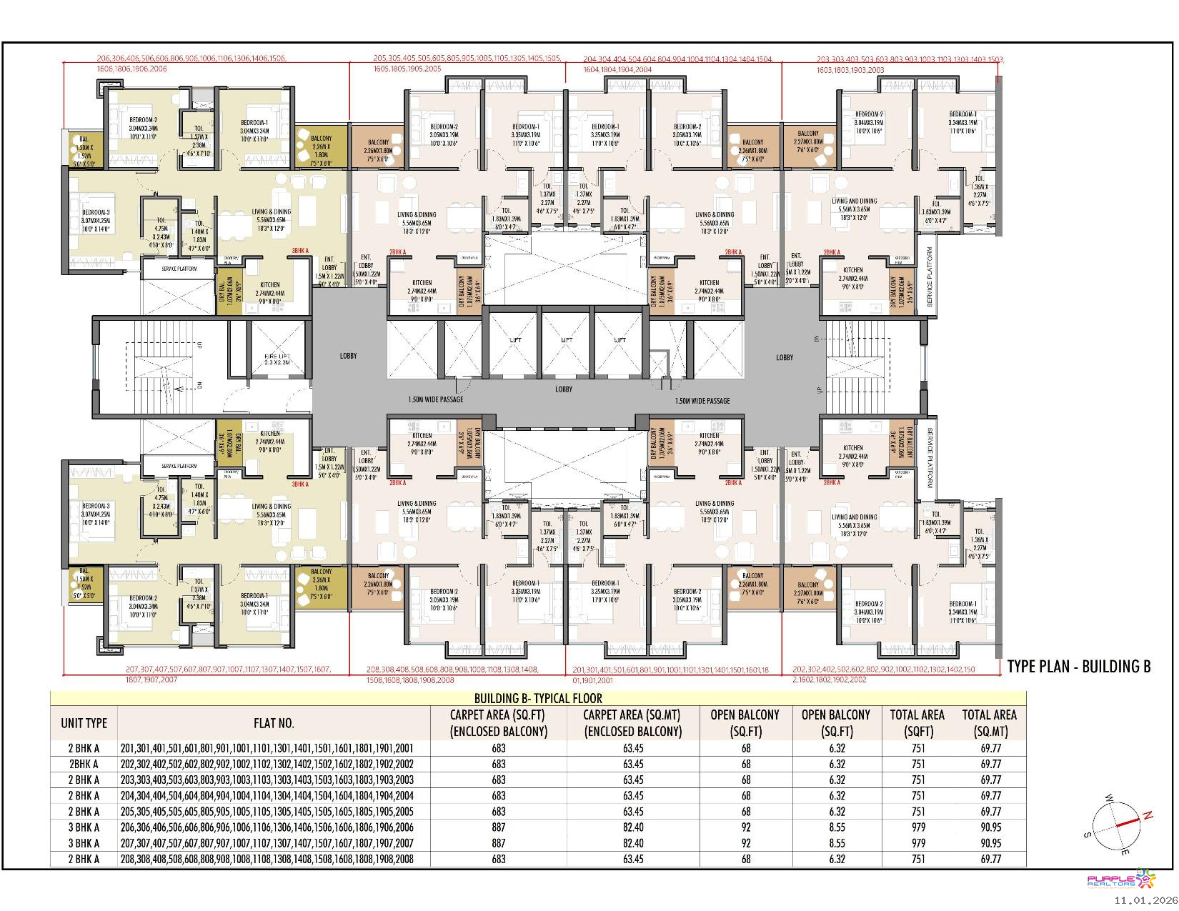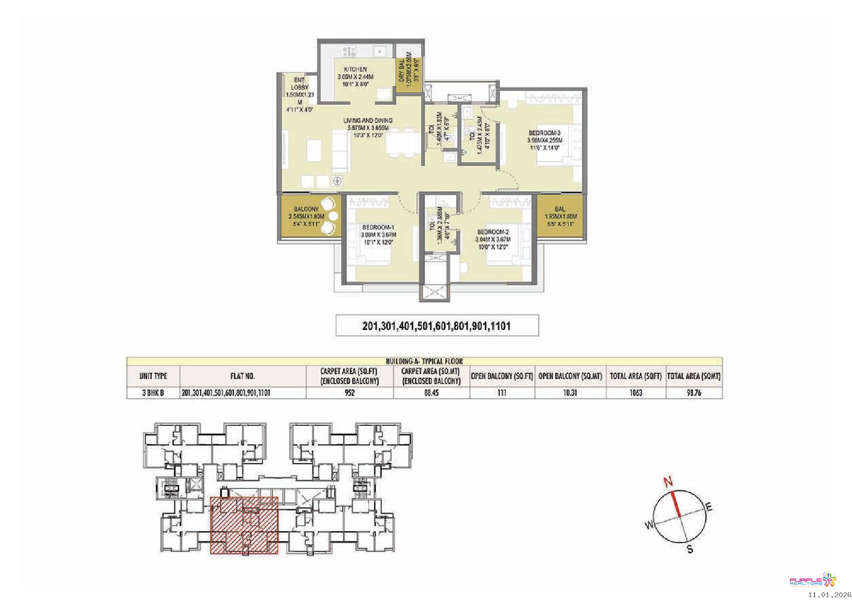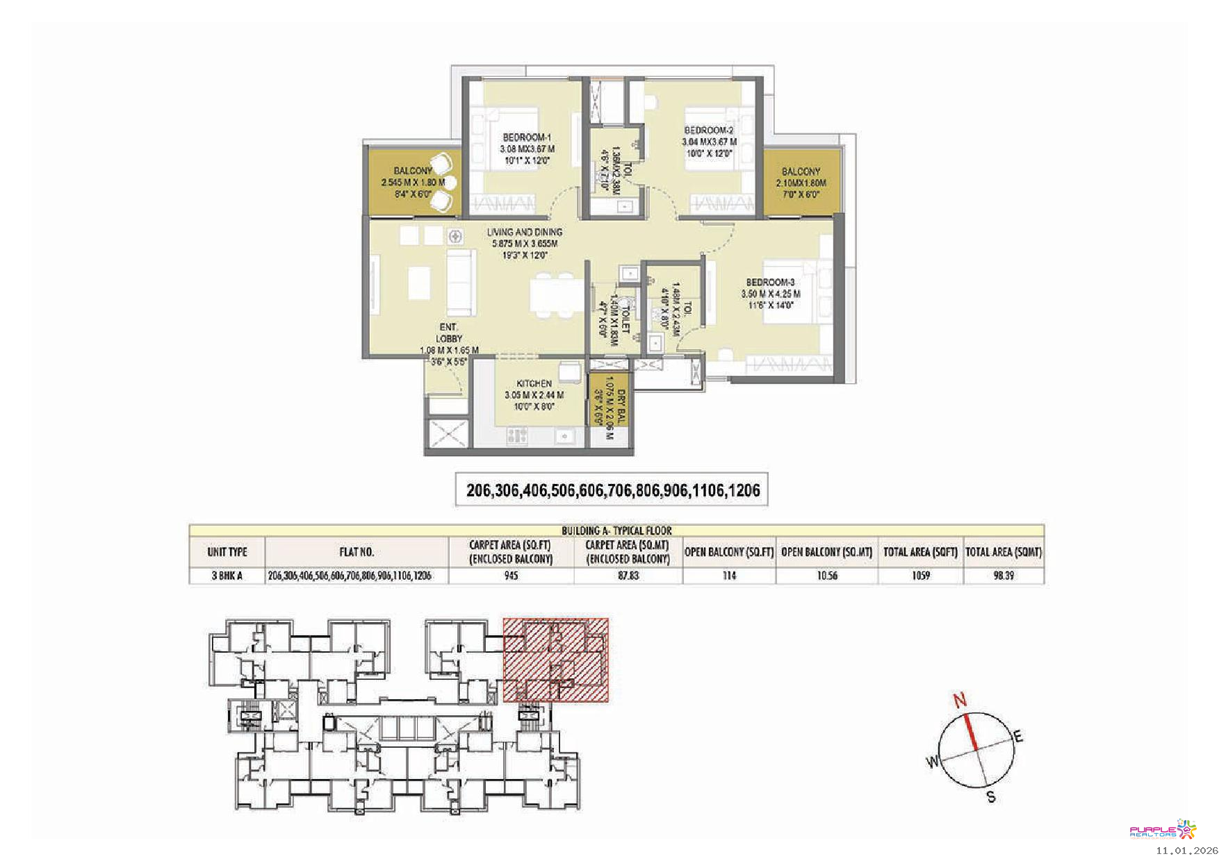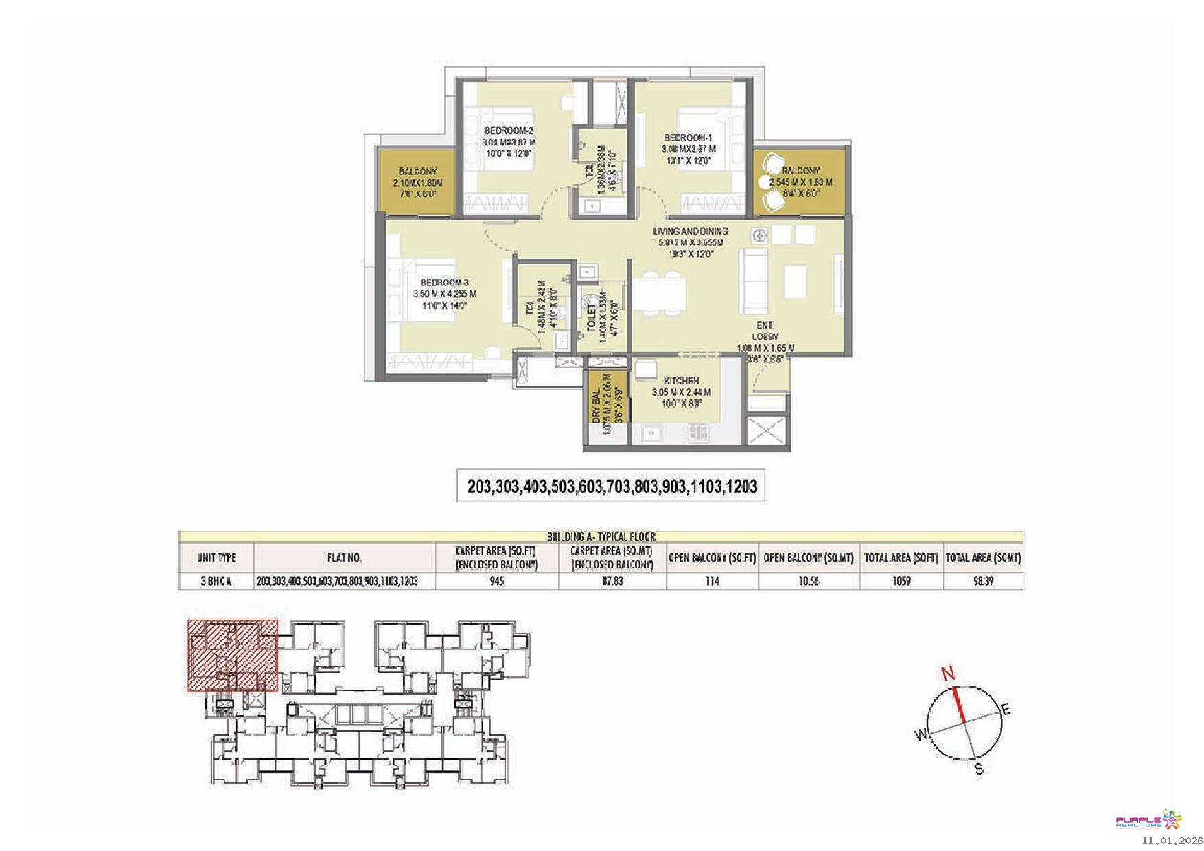 3 BHK - Carpet 979 to 1063 sqft - 1.27 cr Onwards