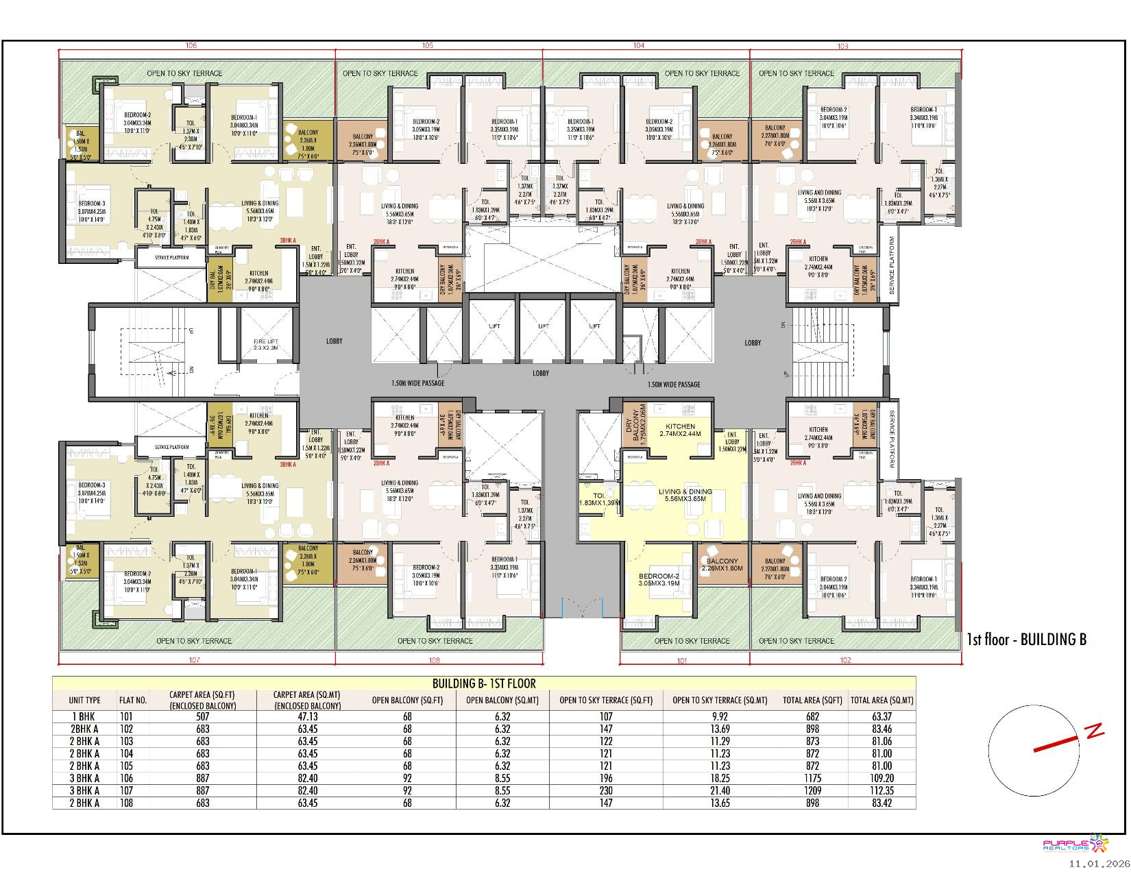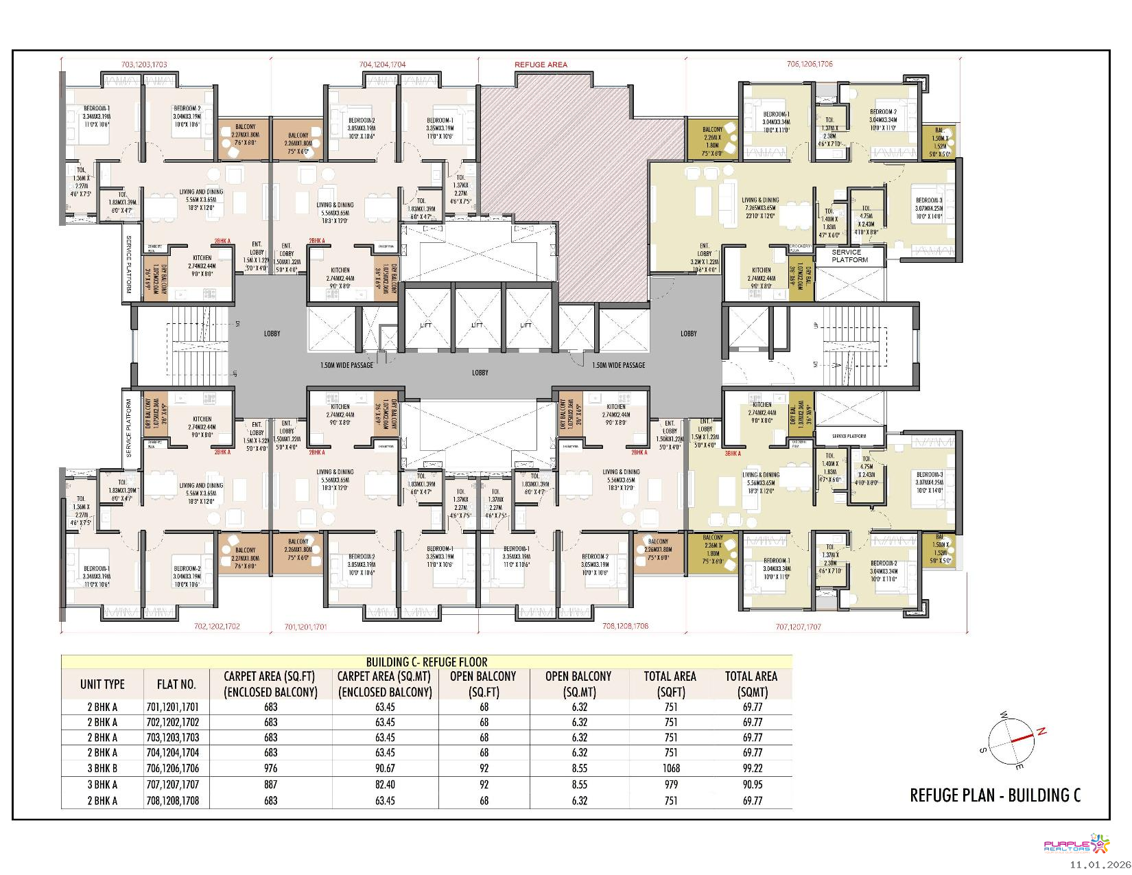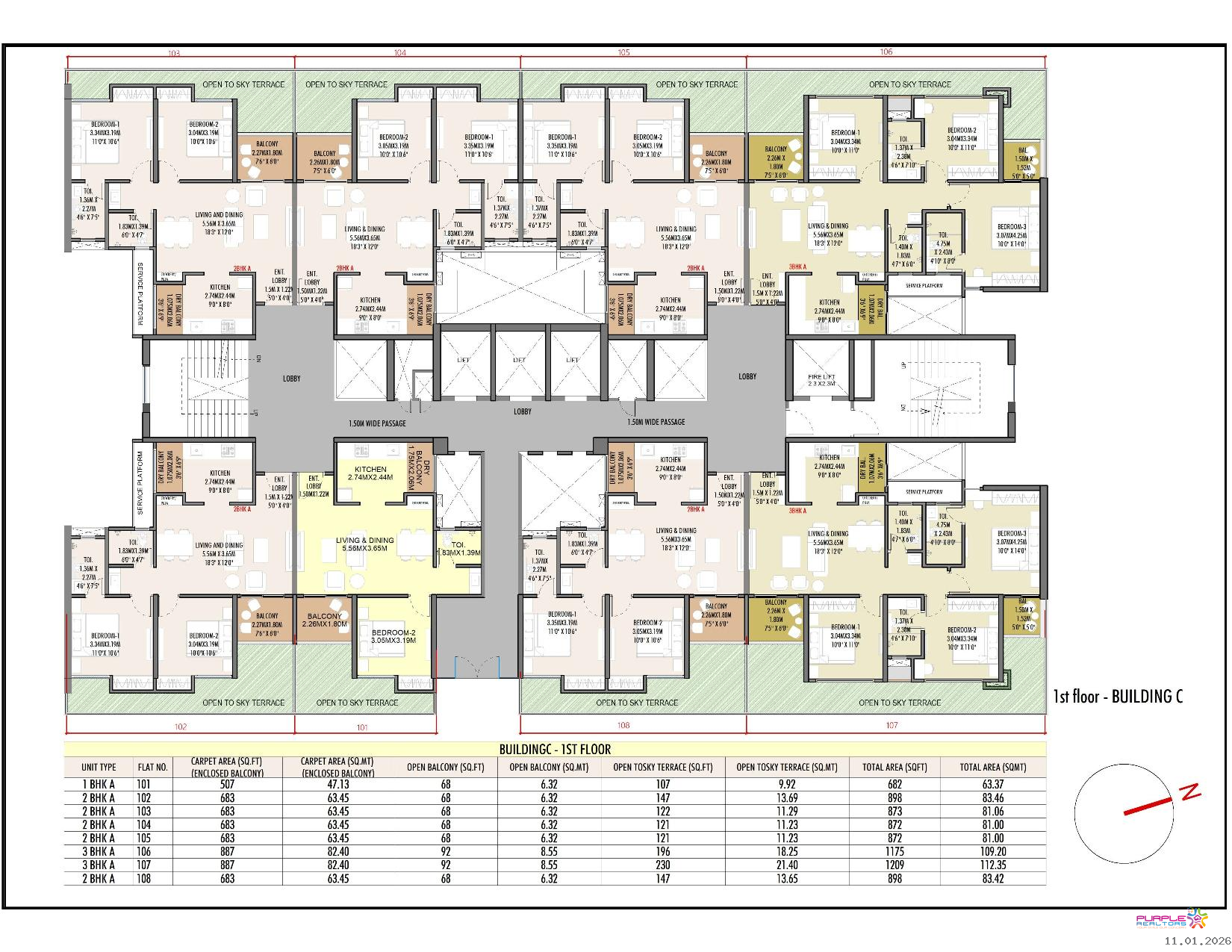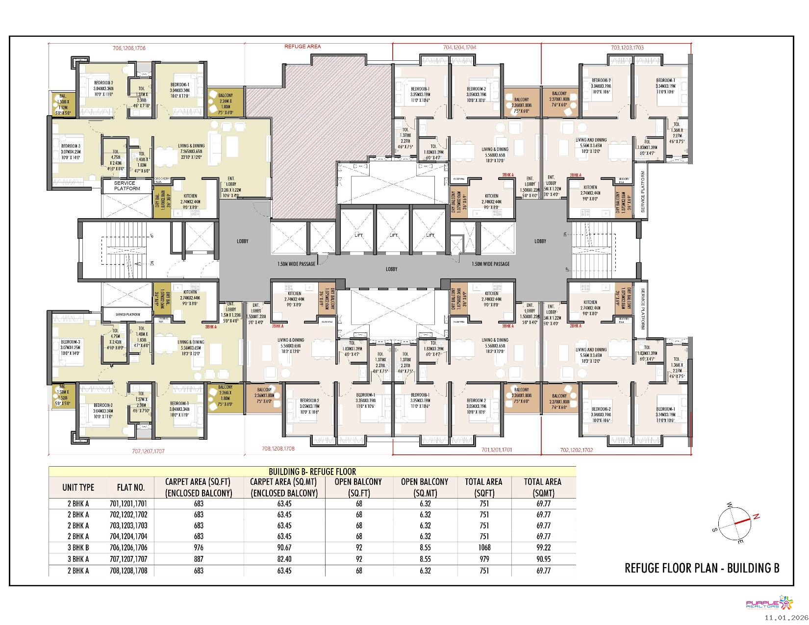 3 BHK - Carpet 979 to 1063 sqft - 1.27 cr Onwards