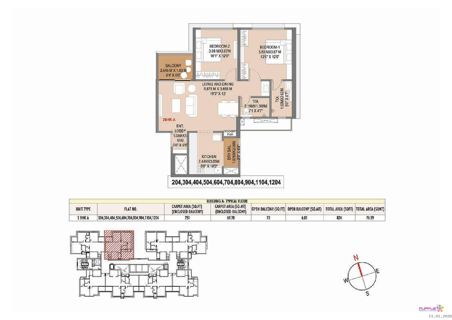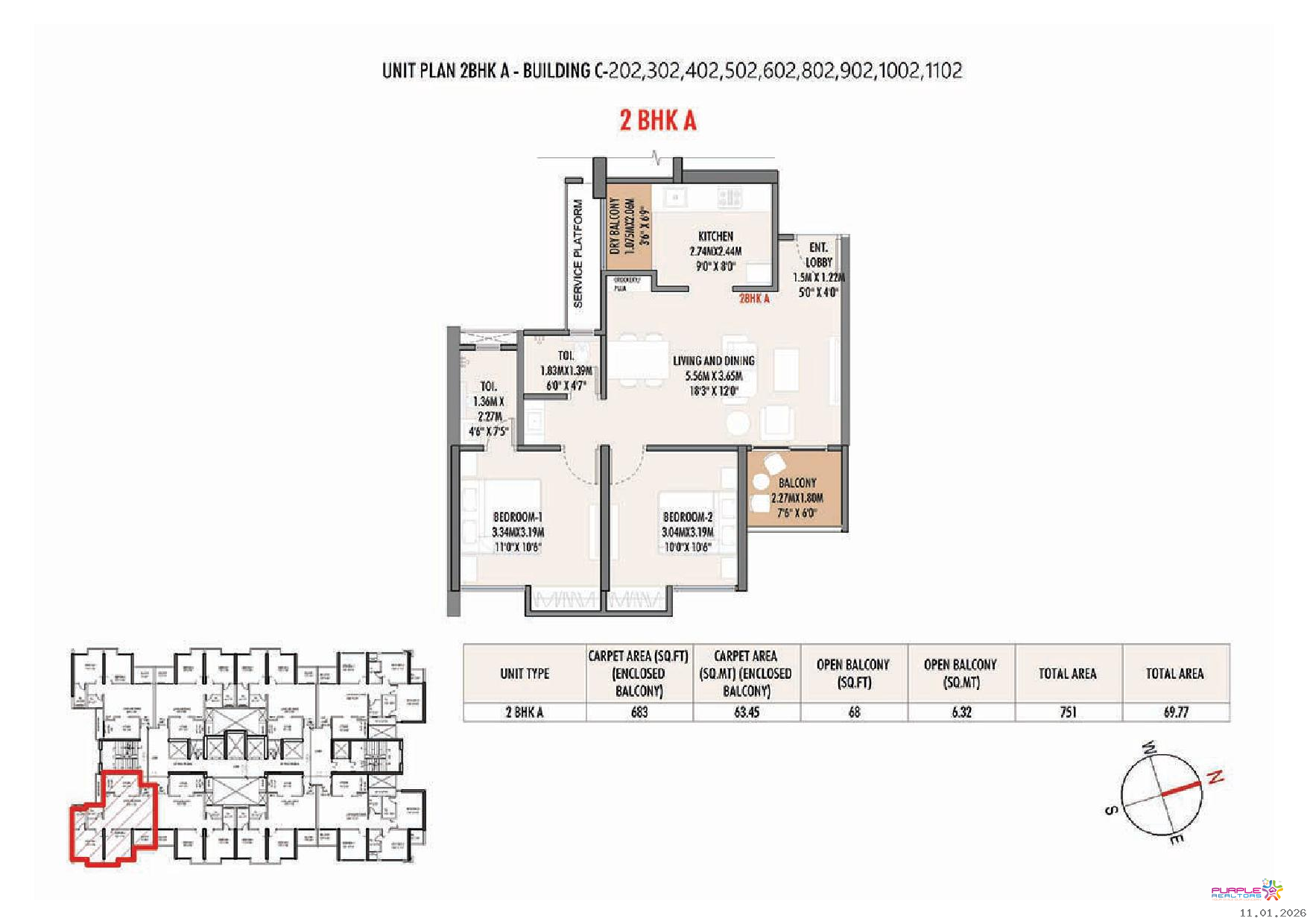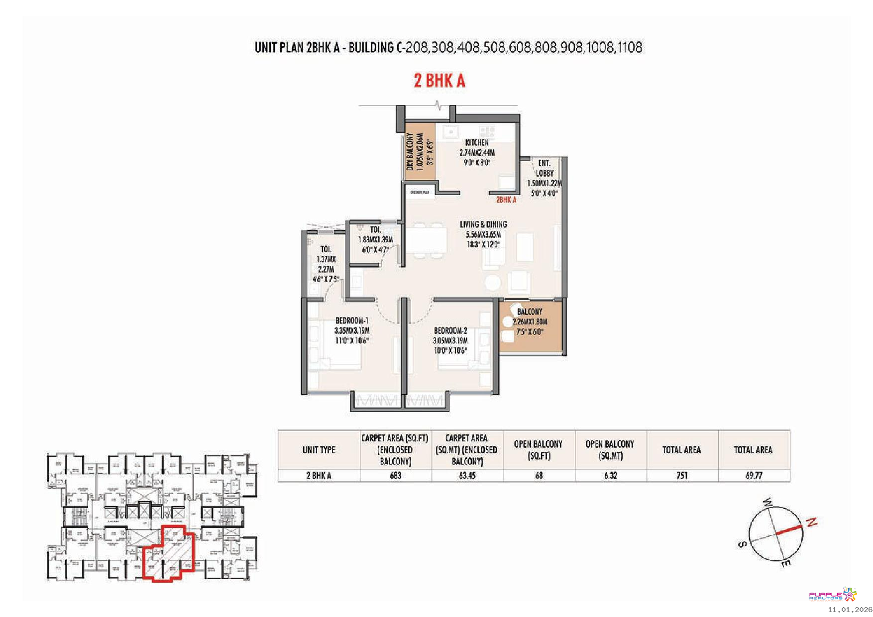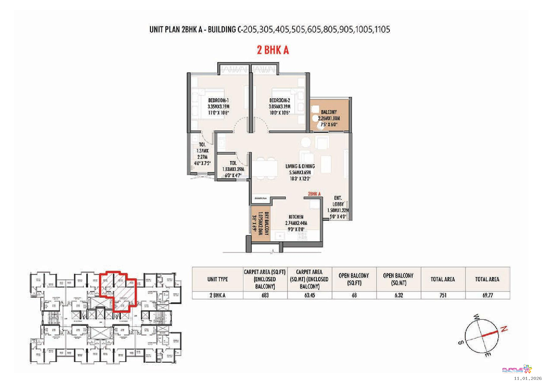 2 BHK - Carpet 751 to 824 sqft - 98 Lac Onwards