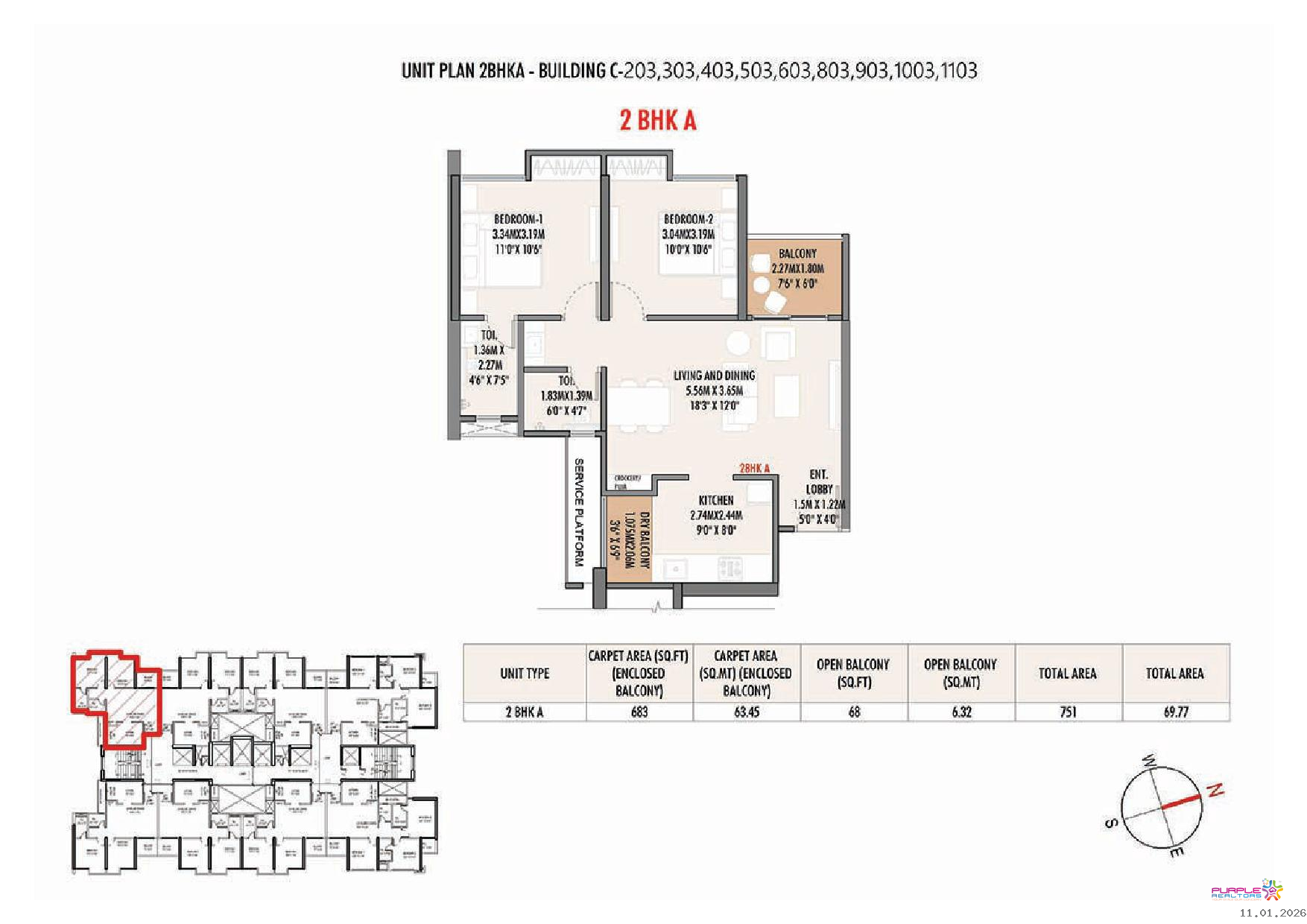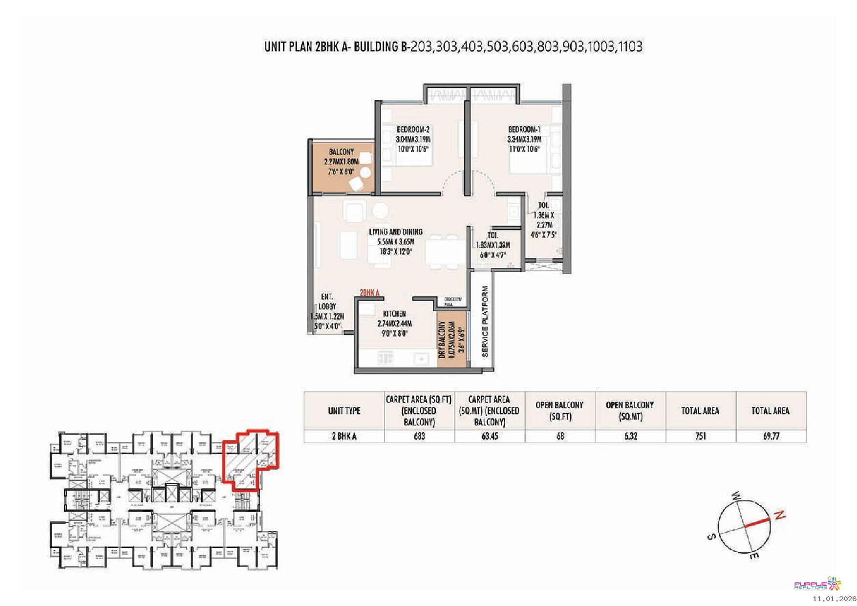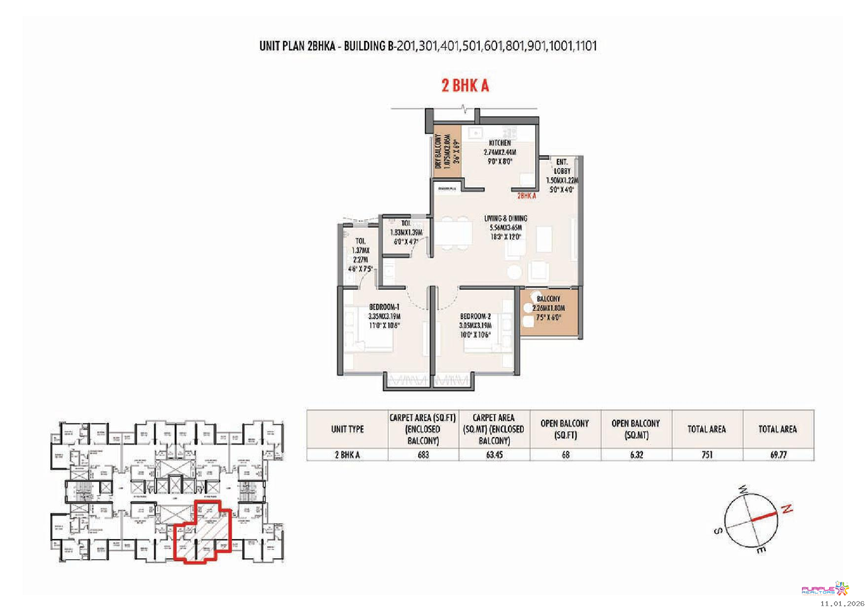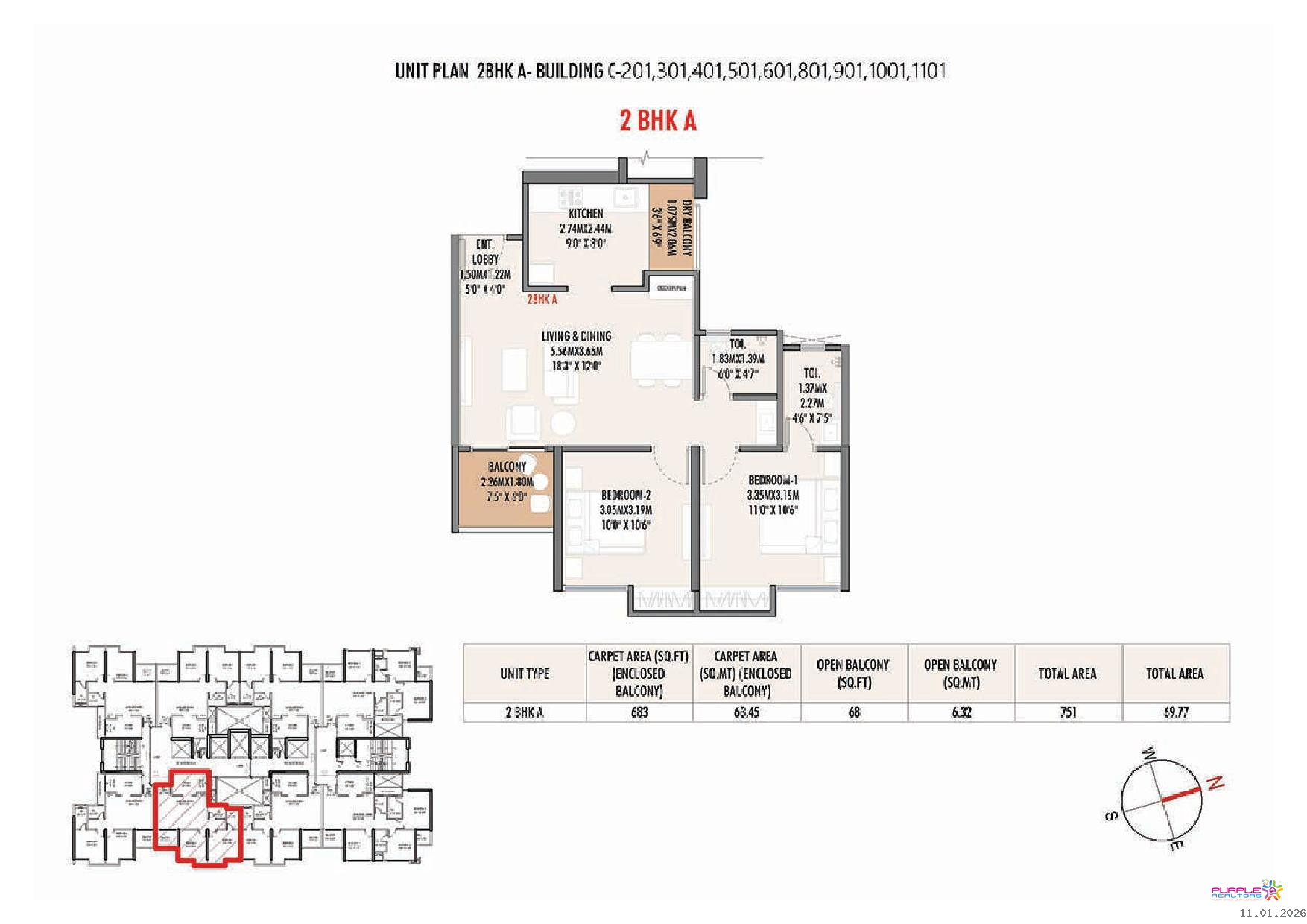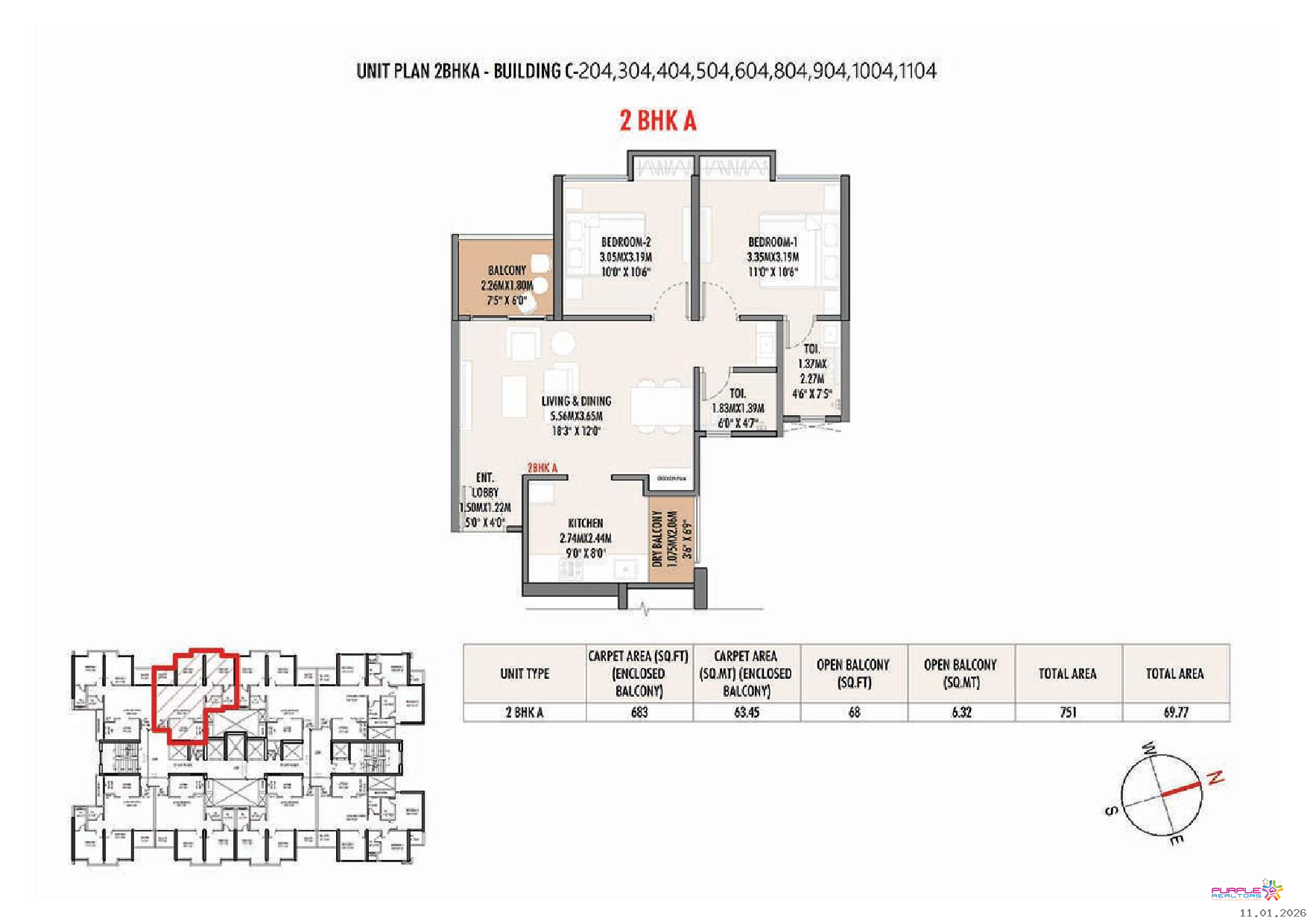 2 BHK - Carpet 751 to 824 sqft - 98 Lac Onwards
