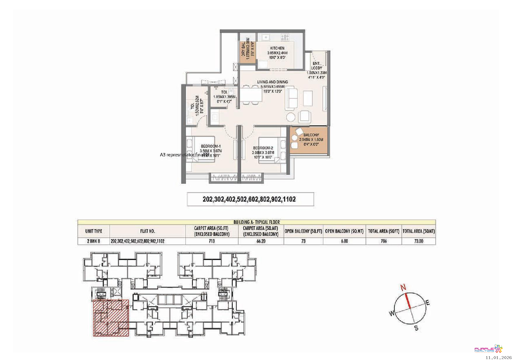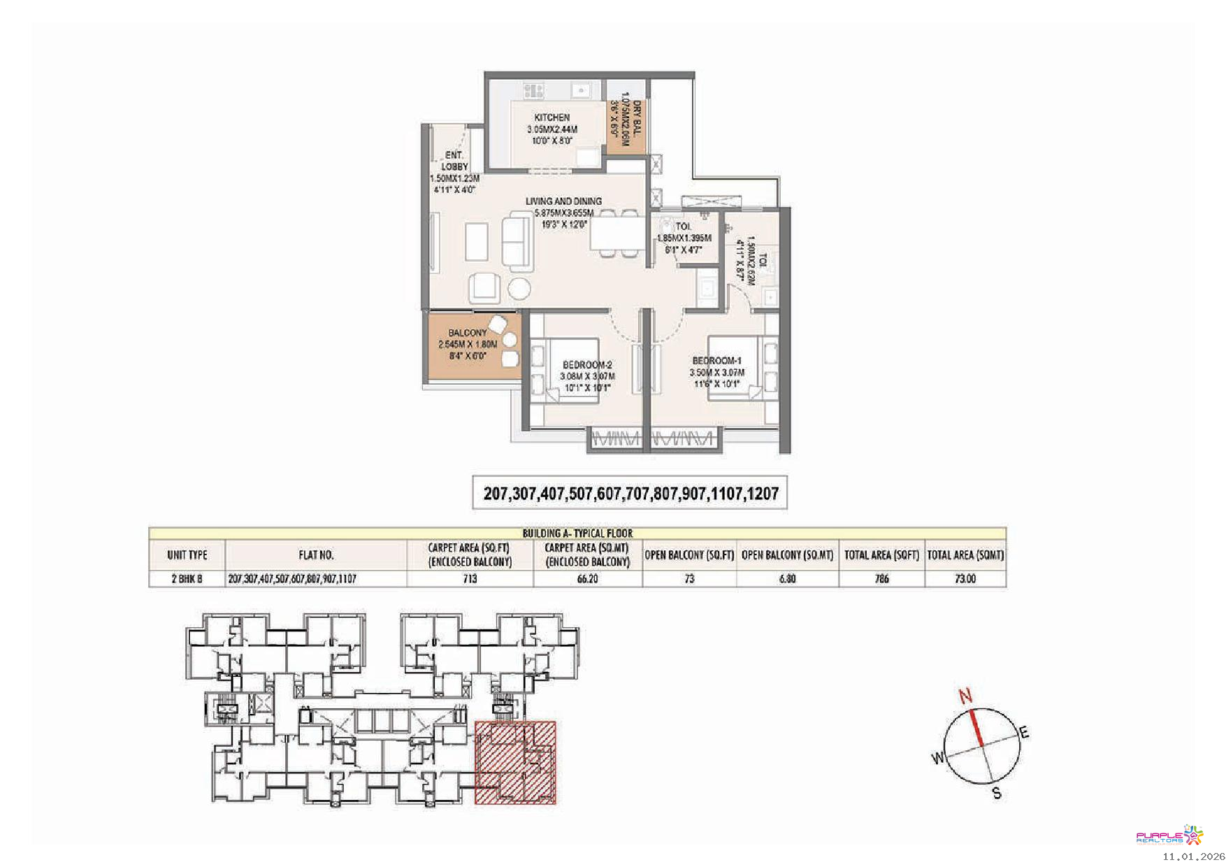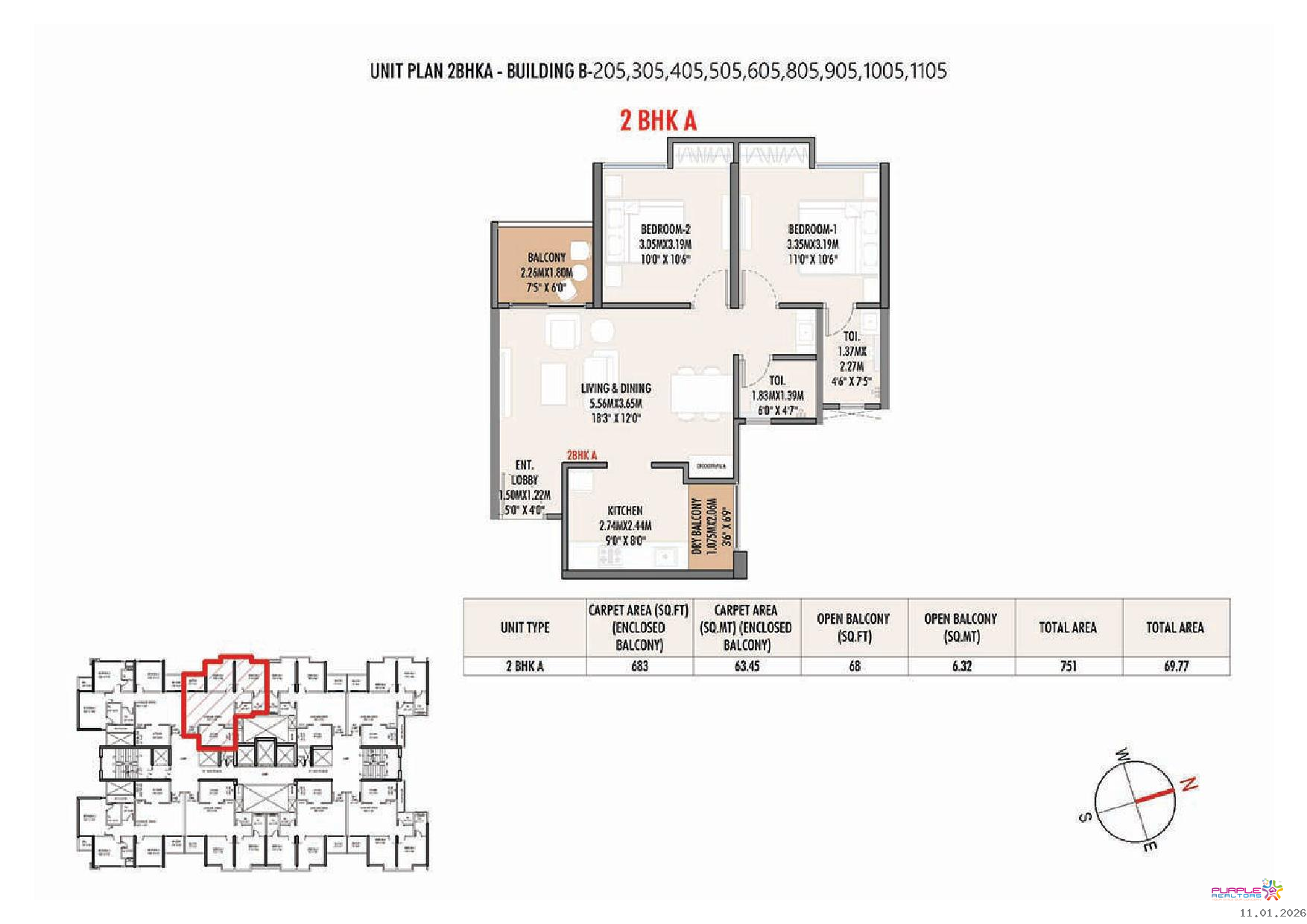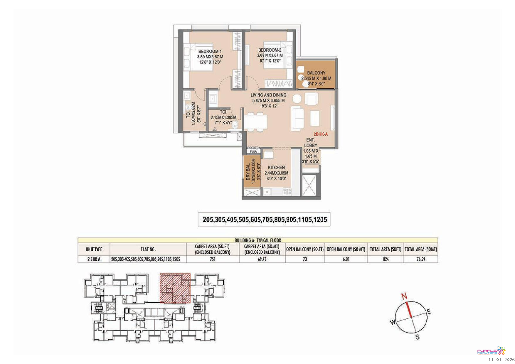 2 BHK - Carpet 751 to 824 sqft - 98 Lac Onwards
