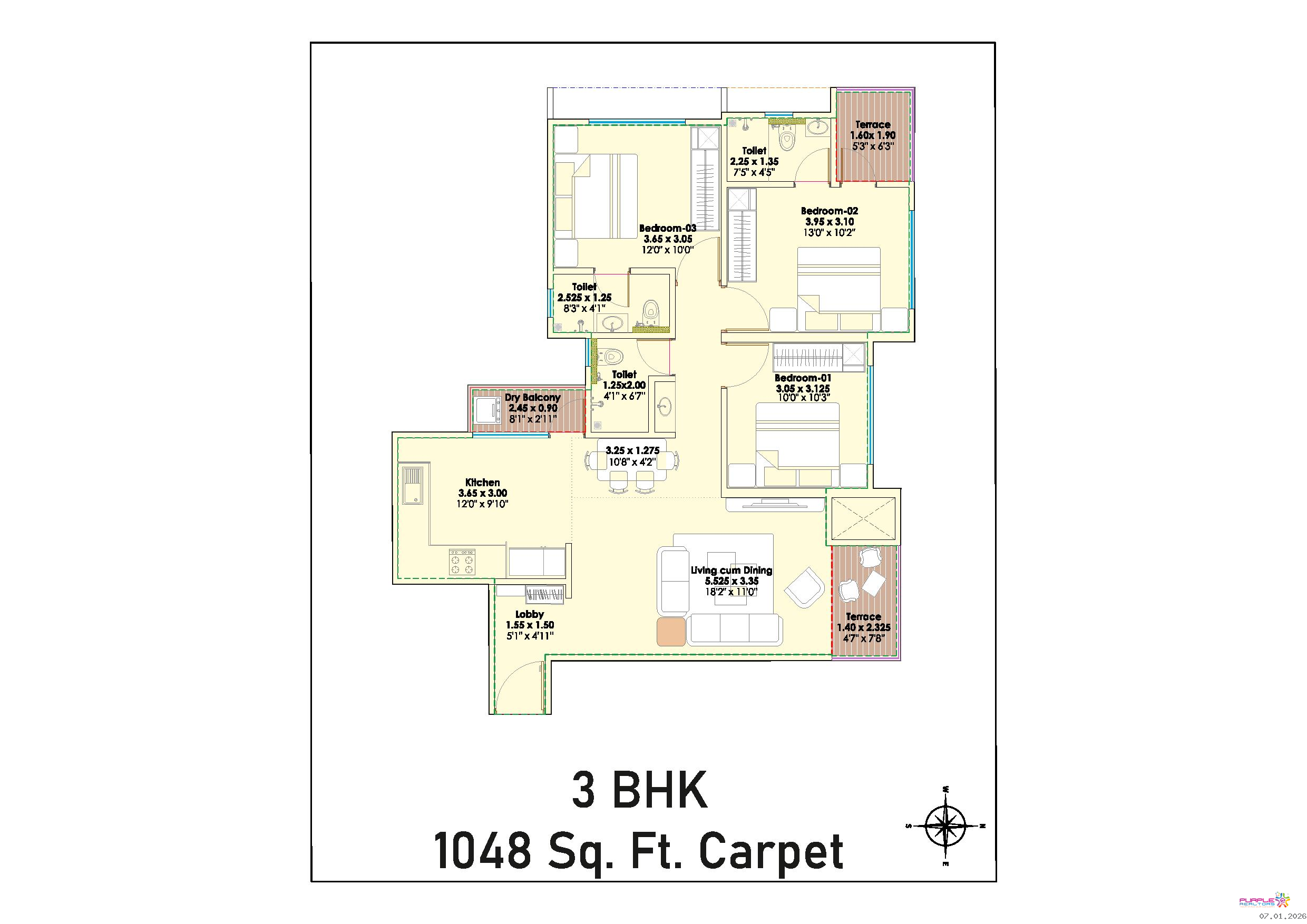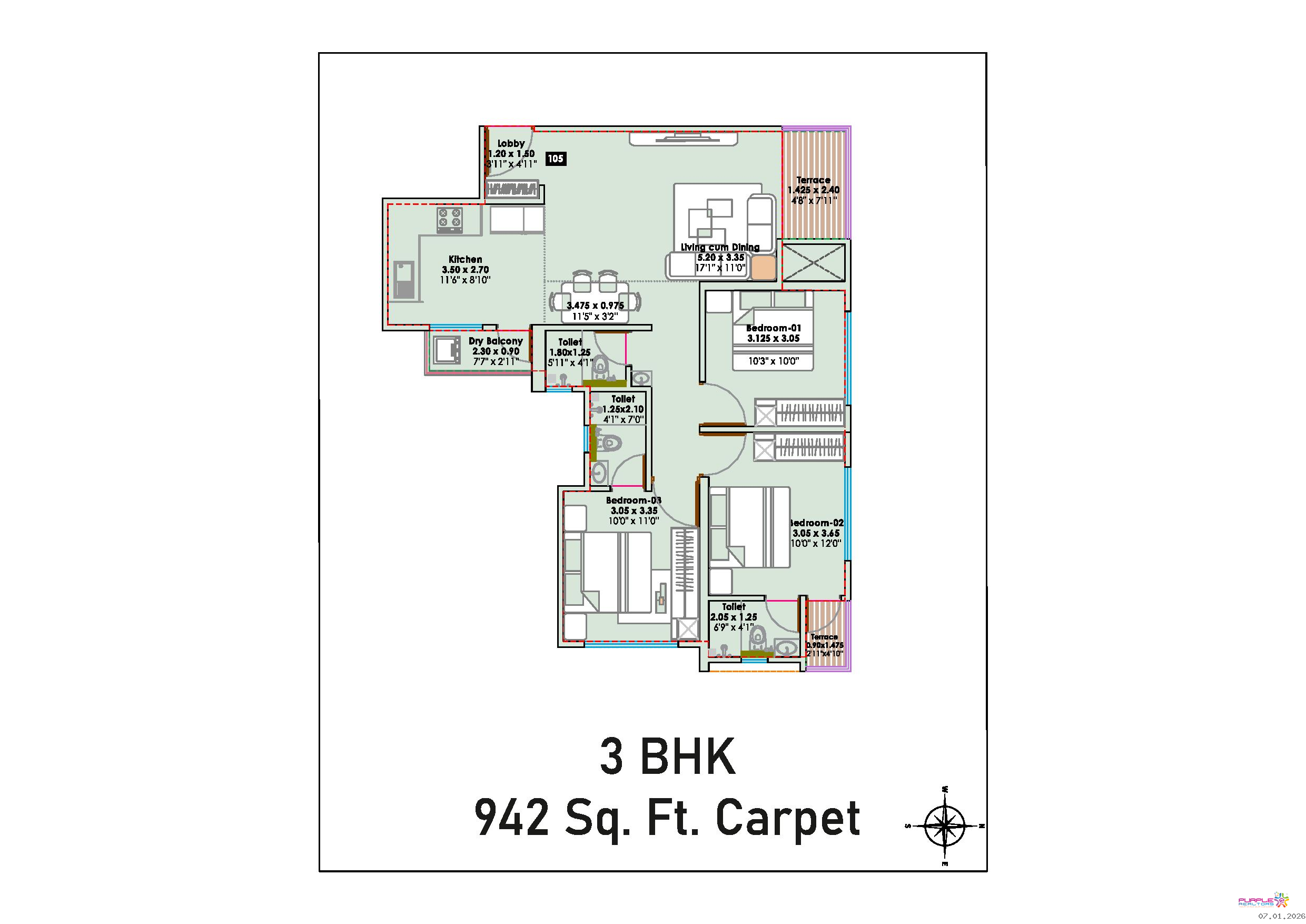 3 BHK - Carpet 942 to 1114 sqft - 94.20 cr Onwards