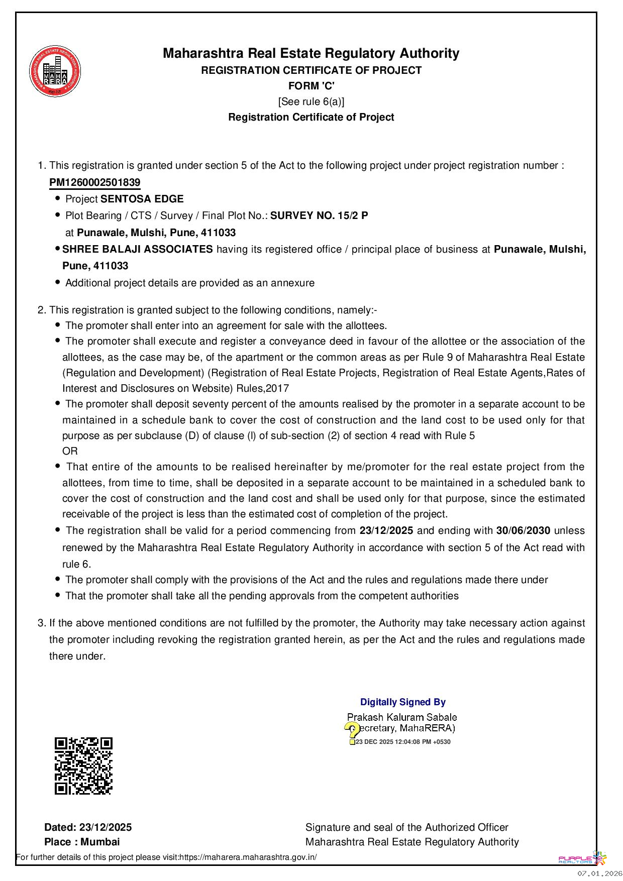 SENTOSA EDGE BY SHREE BALAJI ASSOCIATES (RERA NO PM1260002501839) PUNAWALE PUNE