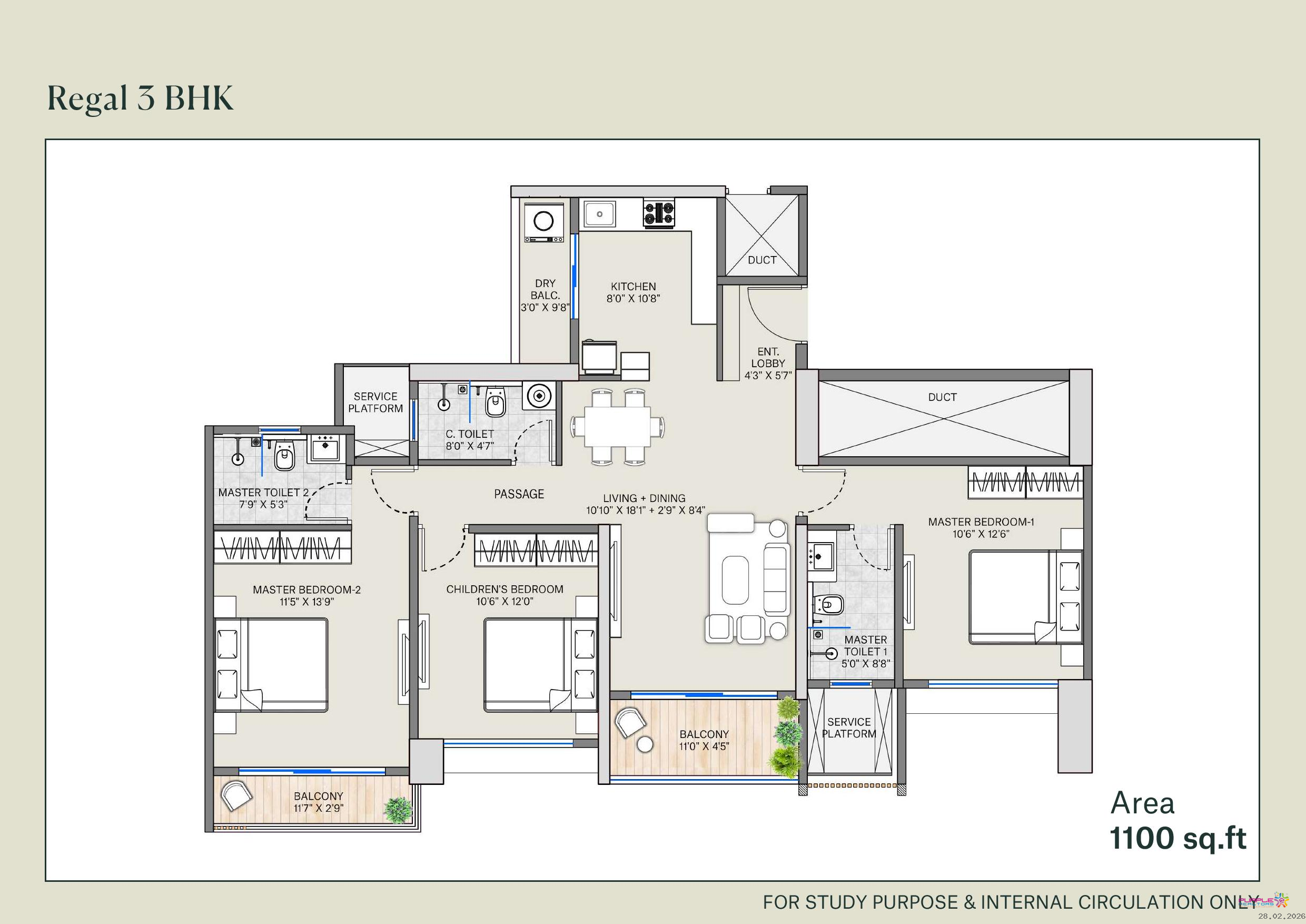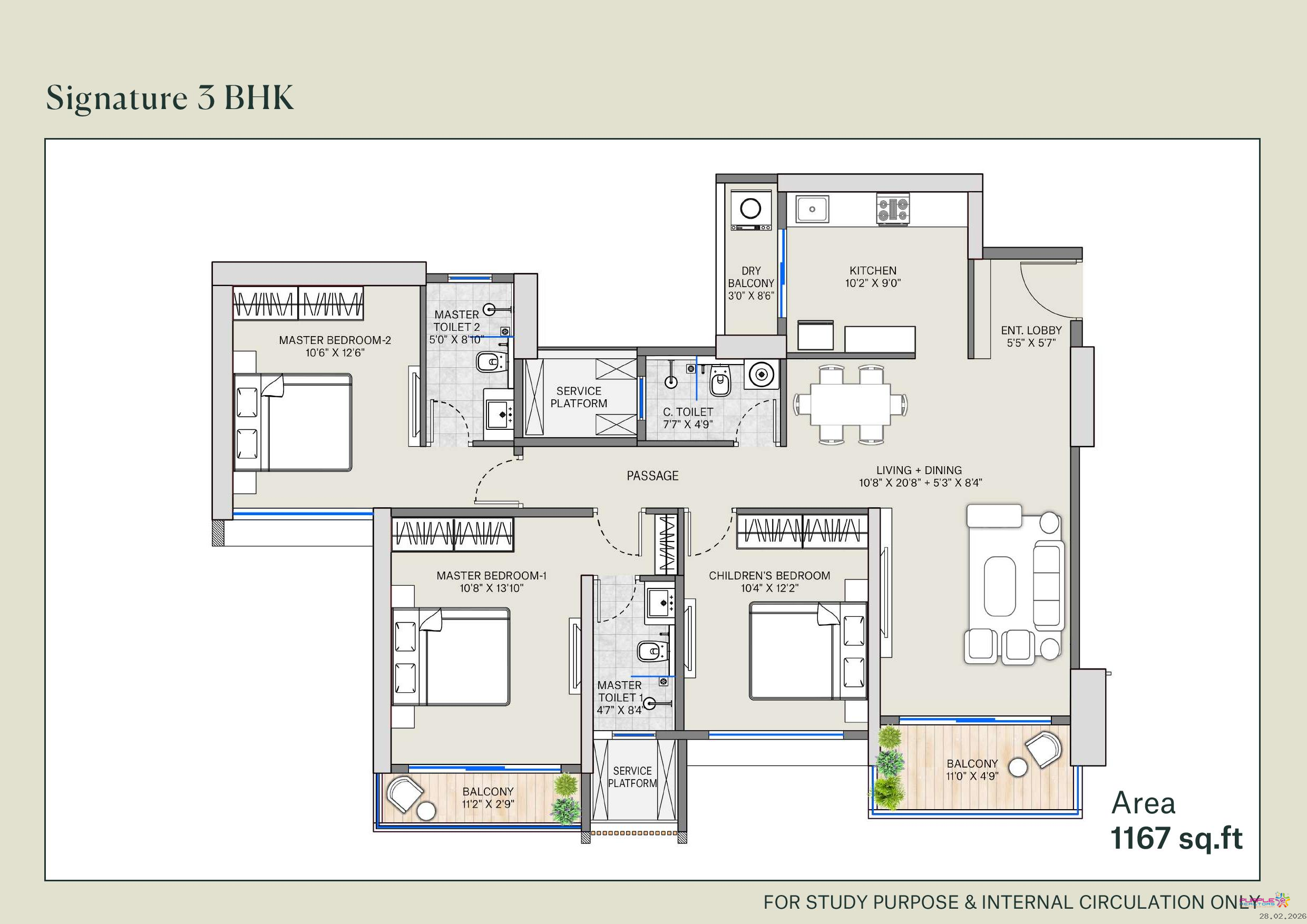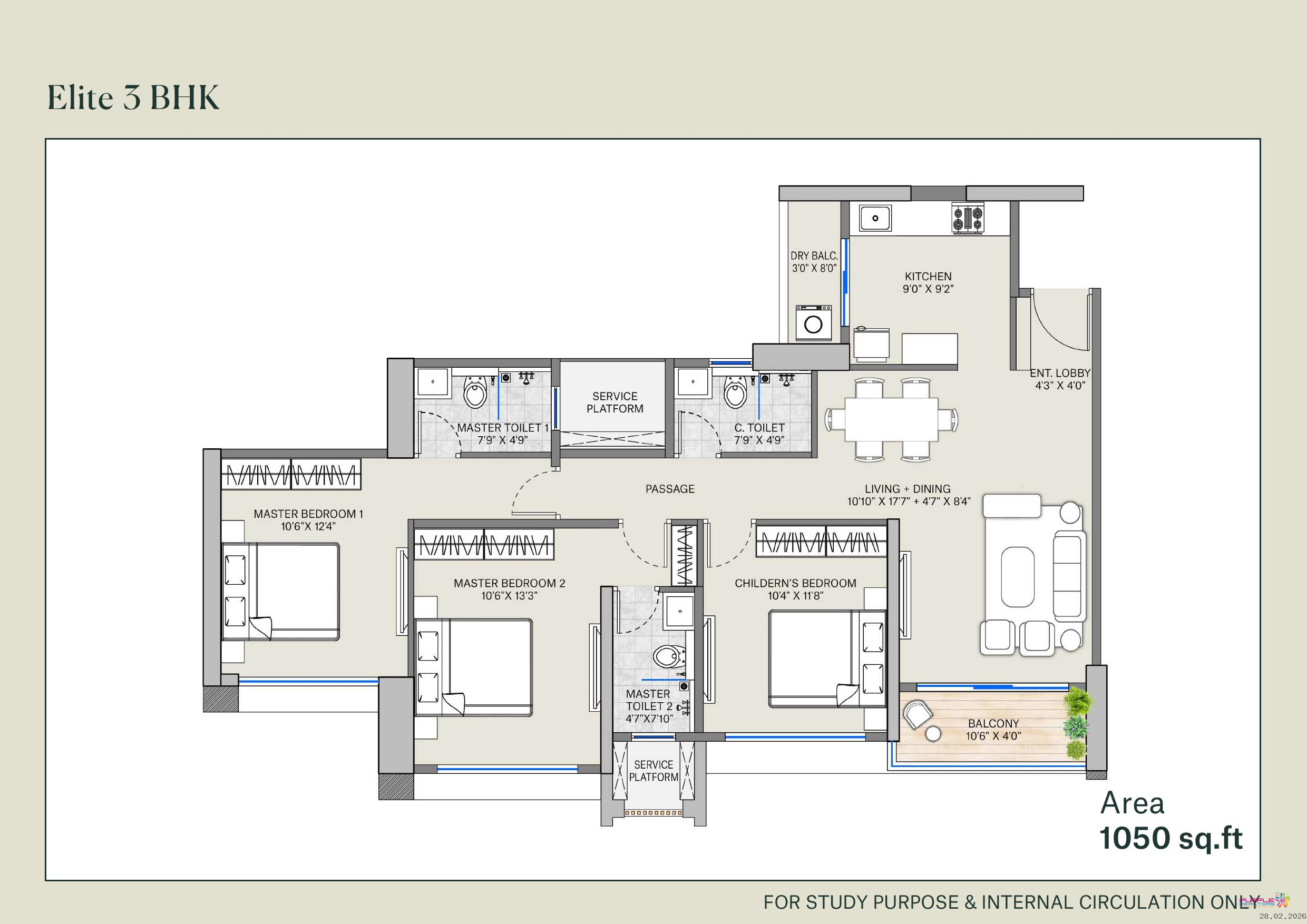 3 BHK - Approx. Carpet 1050 to 1167 sqft - 1.32 Cr Onwards