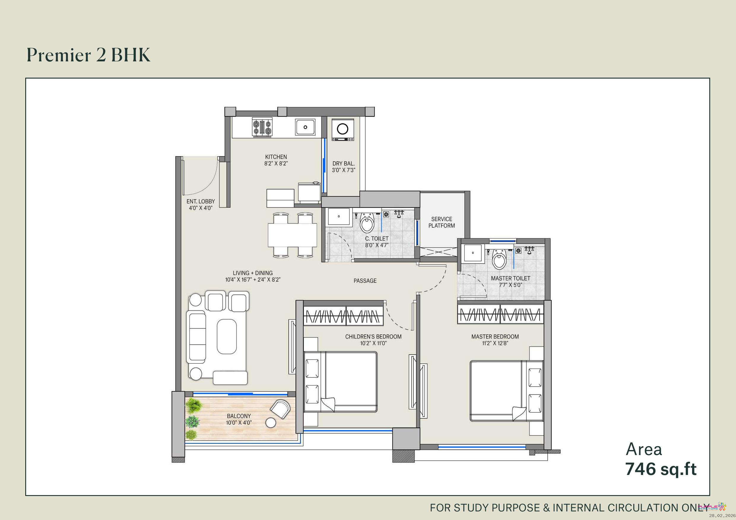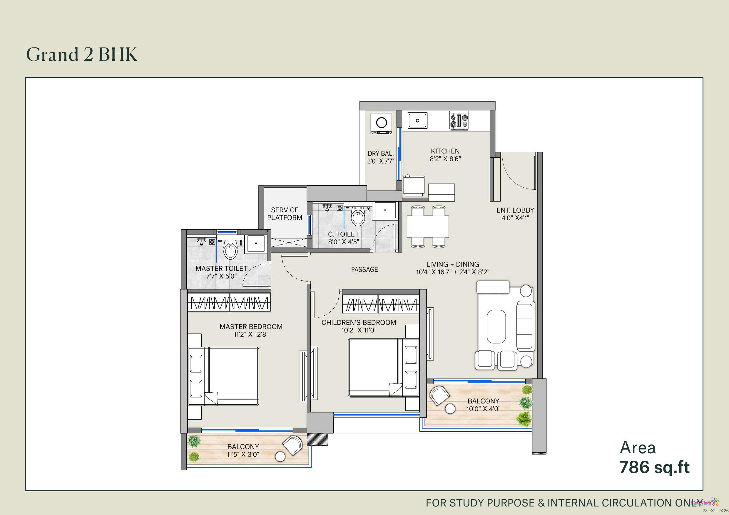 2 BHK - Approx. Carpet 746 to 786 sqft - 89.99 Lac Onwards
