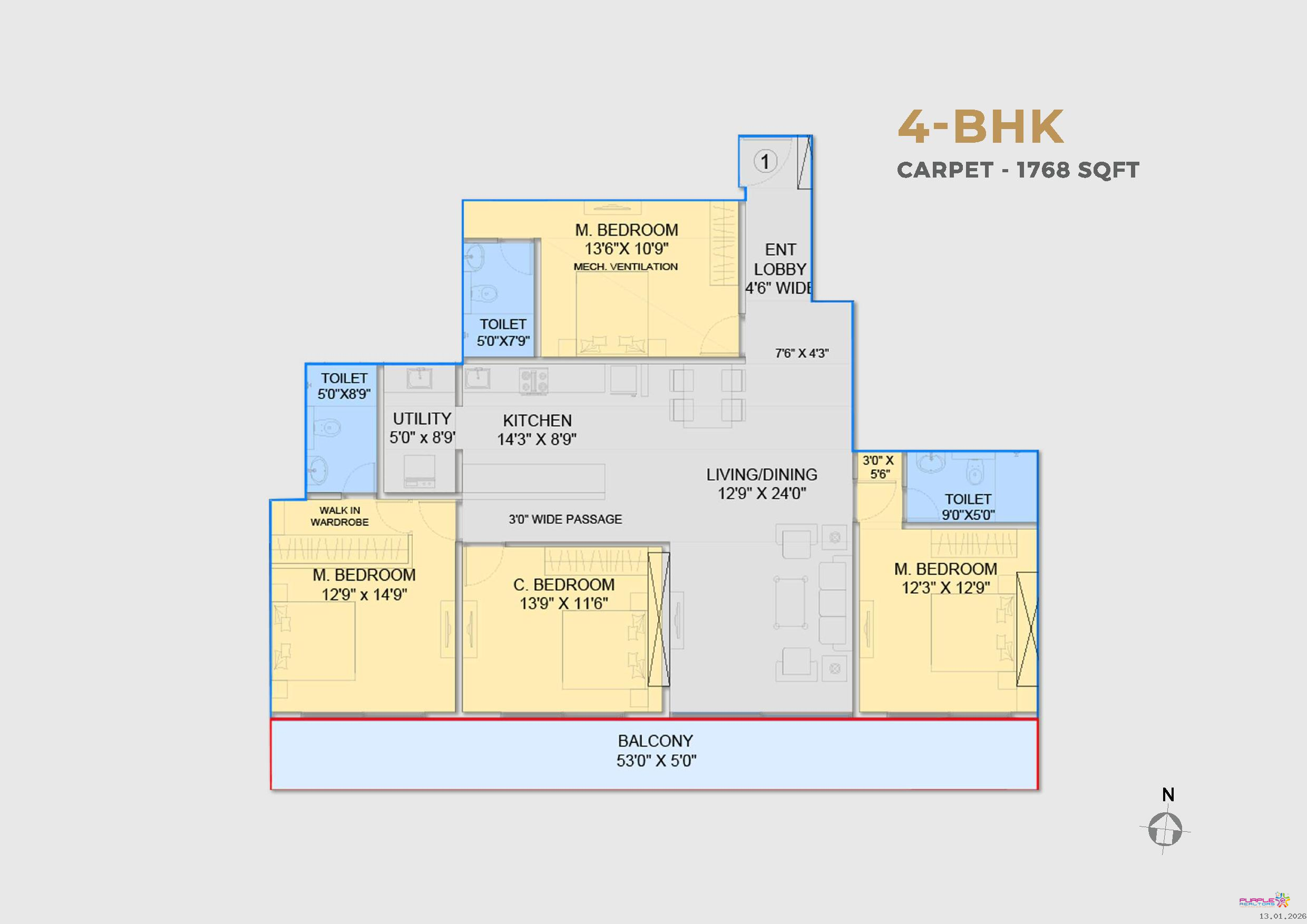 4 BHK - Carpet 1768 sqft - 2.70cr Onwards