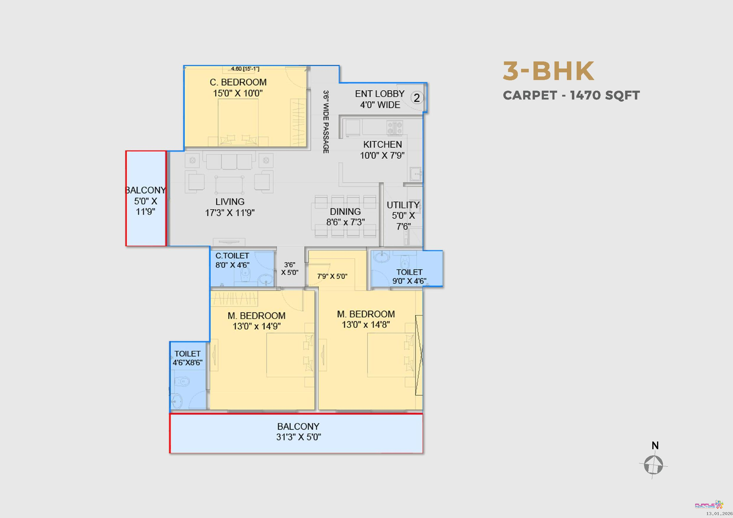 3 BHK - Carpet 1289 to 1470 sqft - 1.96cr Onwards
