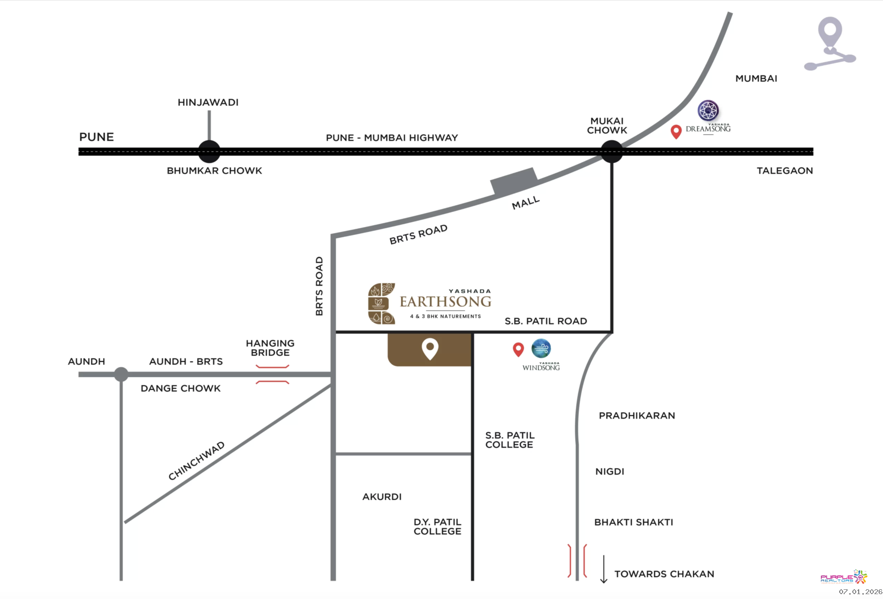 Address: Yashada Earthsong 104/2, 104/4, 105/1 P and 105/2 P, S.B. Patil College Road, Ravet, Pune - 412101