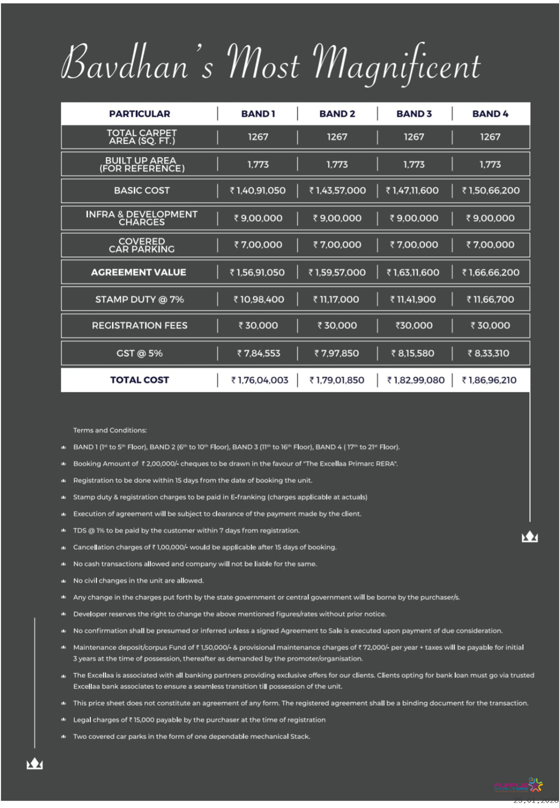 Address: Excellaa Primarc Bavdhan Opp. 24K Stargaze & SNBP Techno School, Near Marigold Banquet, Bavdhan,Pune-21