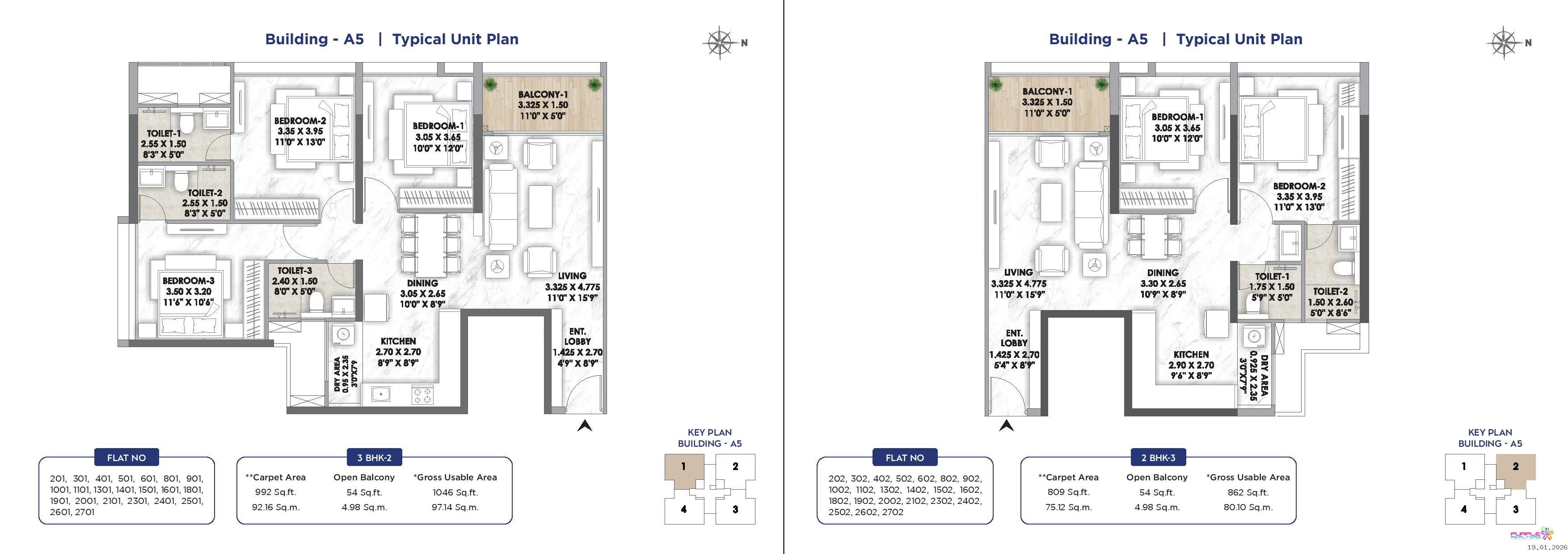 2 BHK- Ultima* Carpet: 879 sq.ft* - 1.45 Cr*