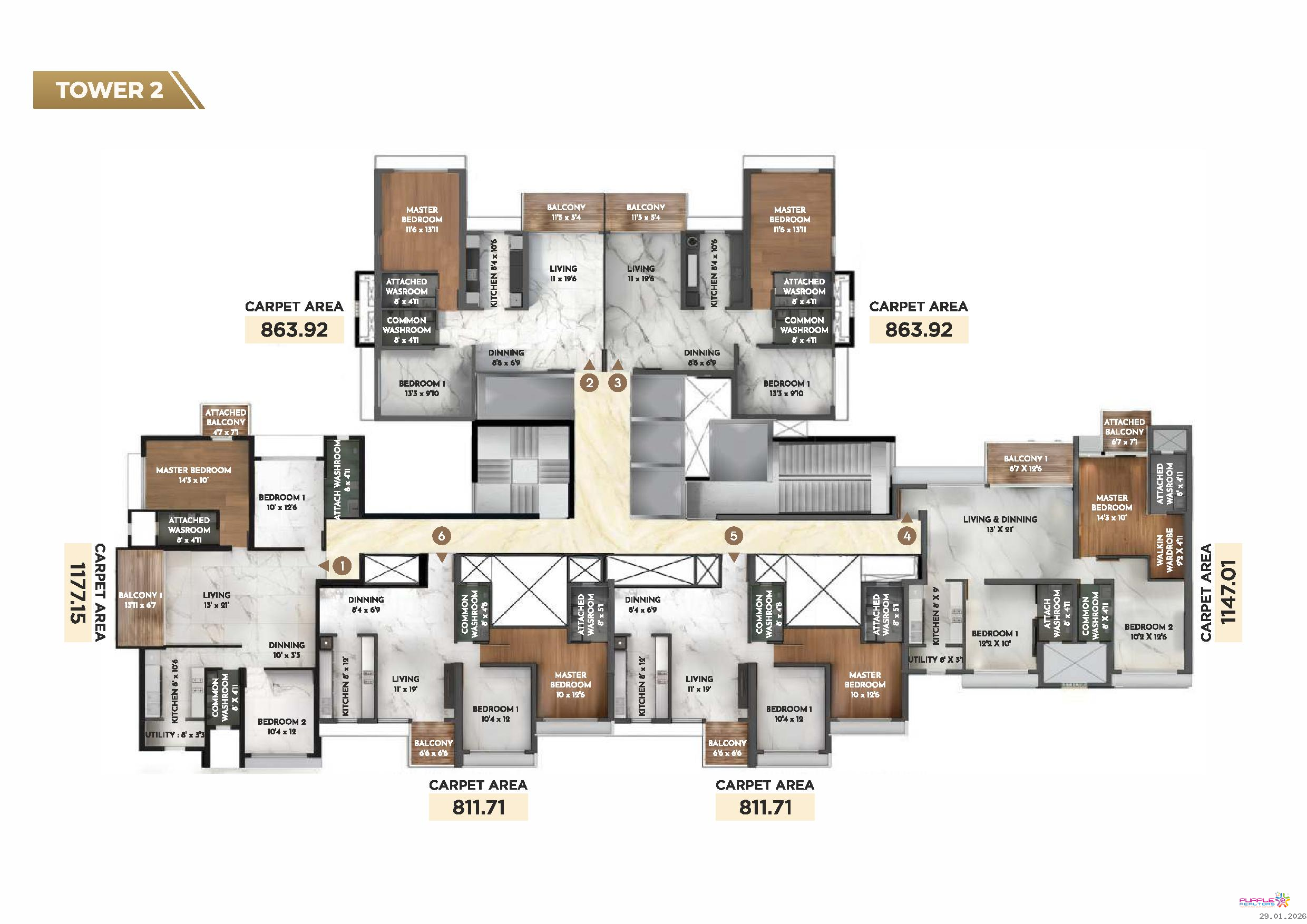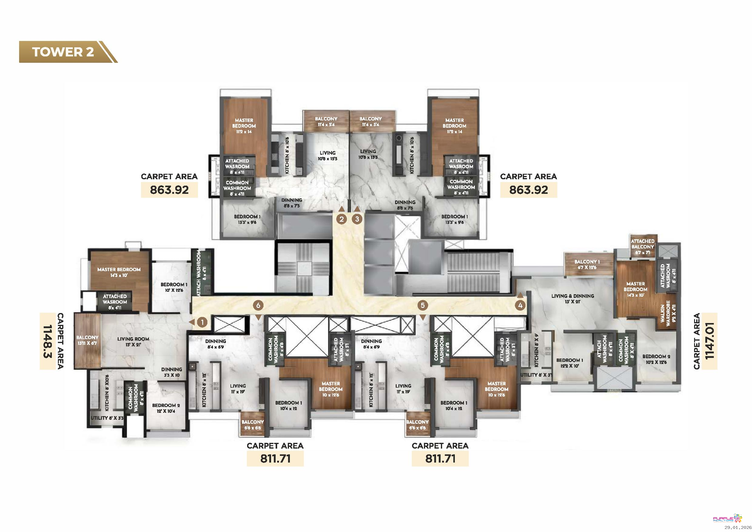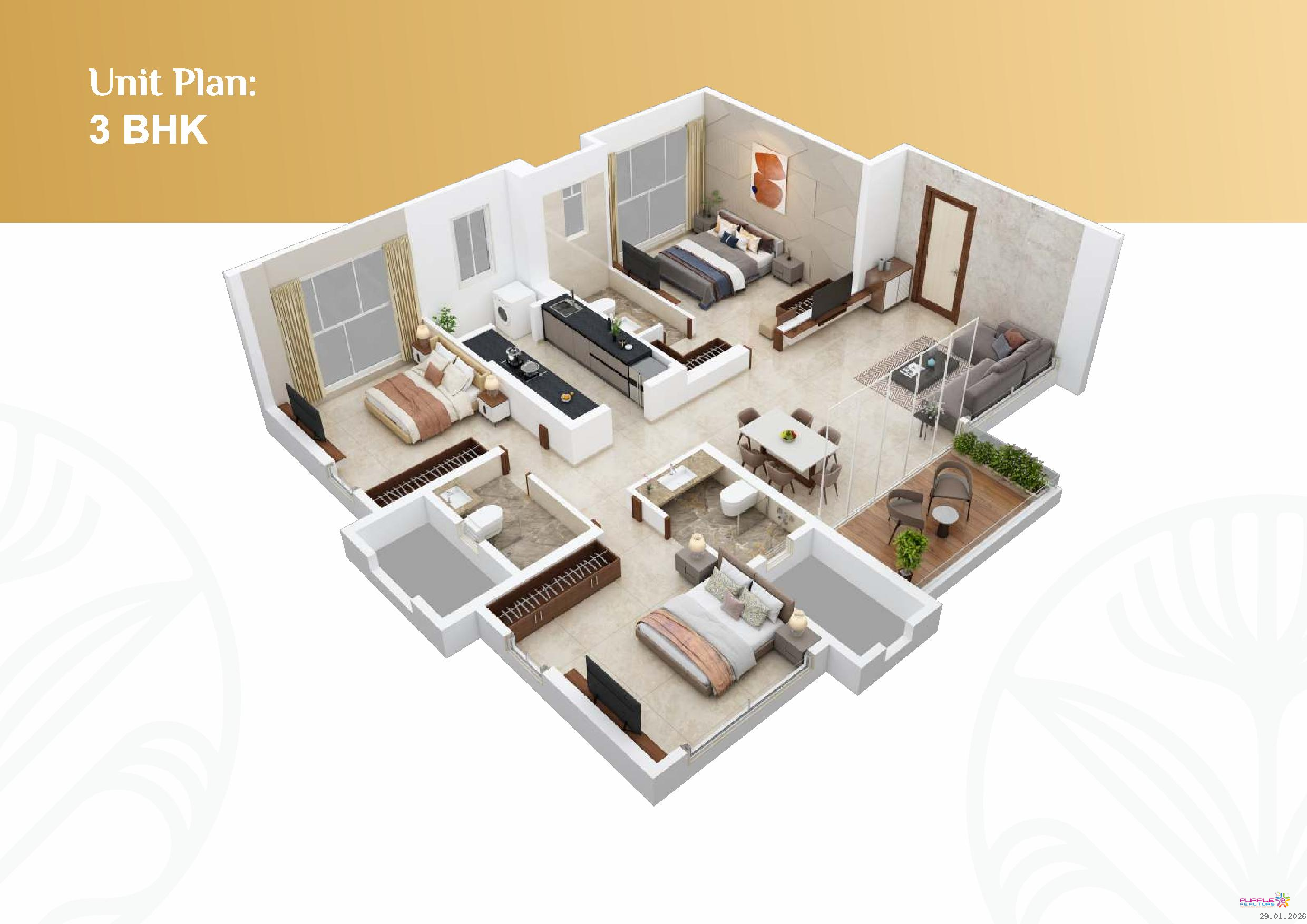 3 BHK - Carpet 990 to 1177 sqft - 1.36cr Onwards