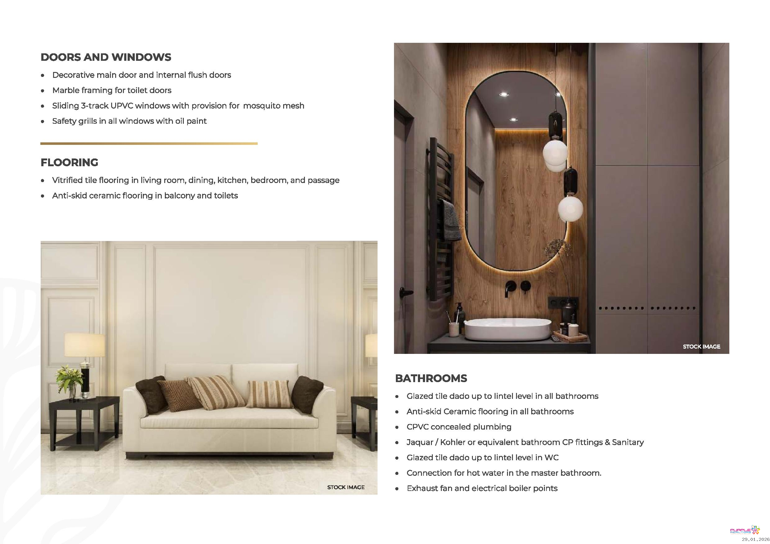 • Jaguar/ Kohler or equivalent bathroom CP fittings & Sanitary