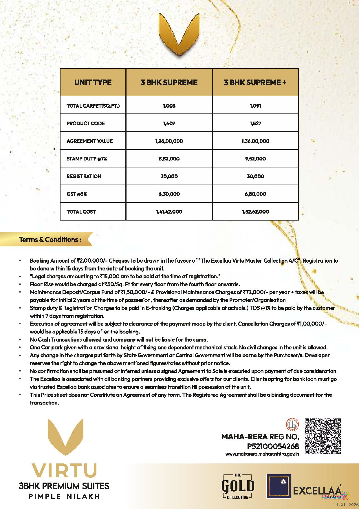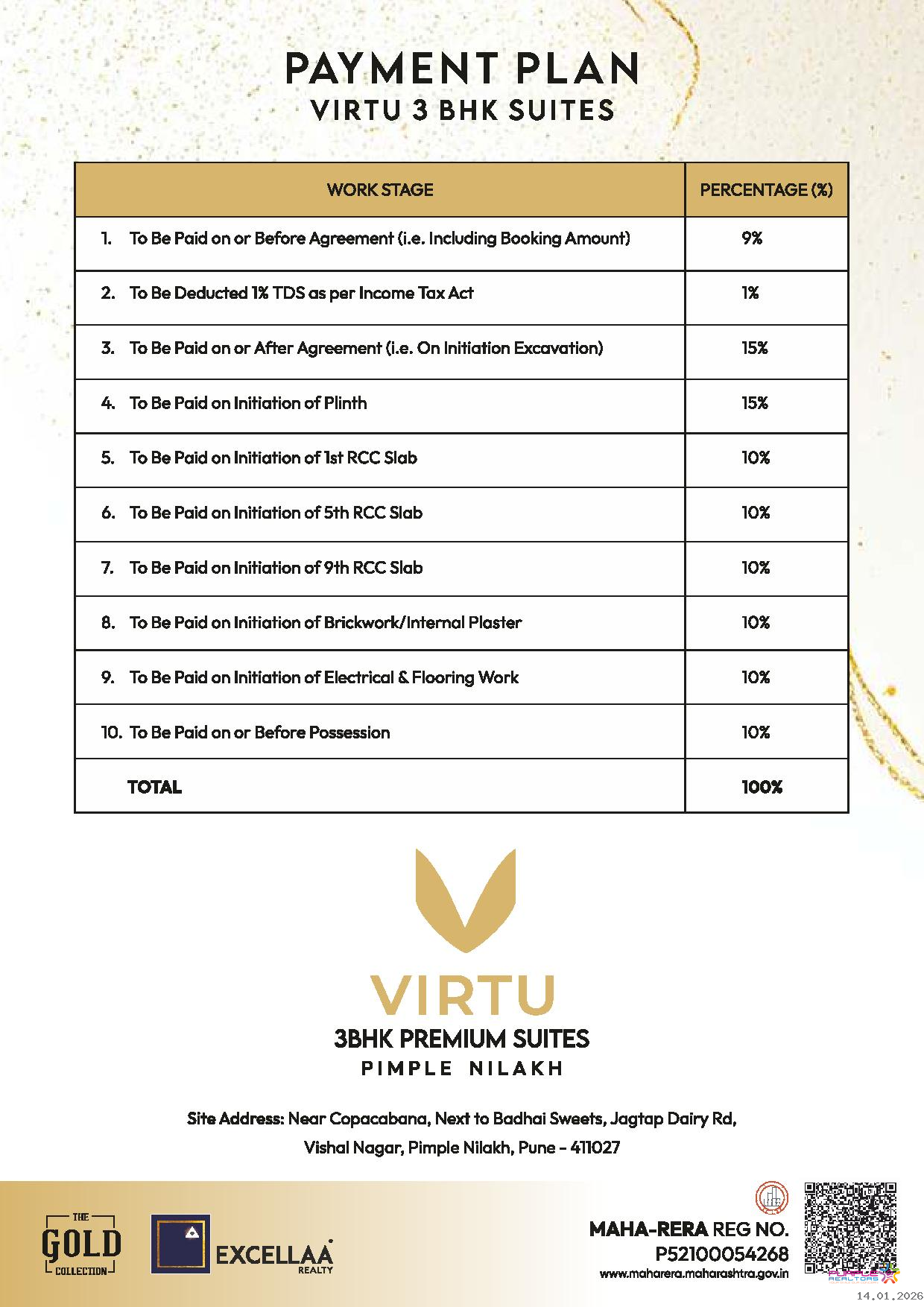 Address: Excellaa Virtu Near Copacabana, Next to Badhai Sweets, Jagtap Dairy Rd, Vishal Nagar, Pimple Nilakh, Pune - 27