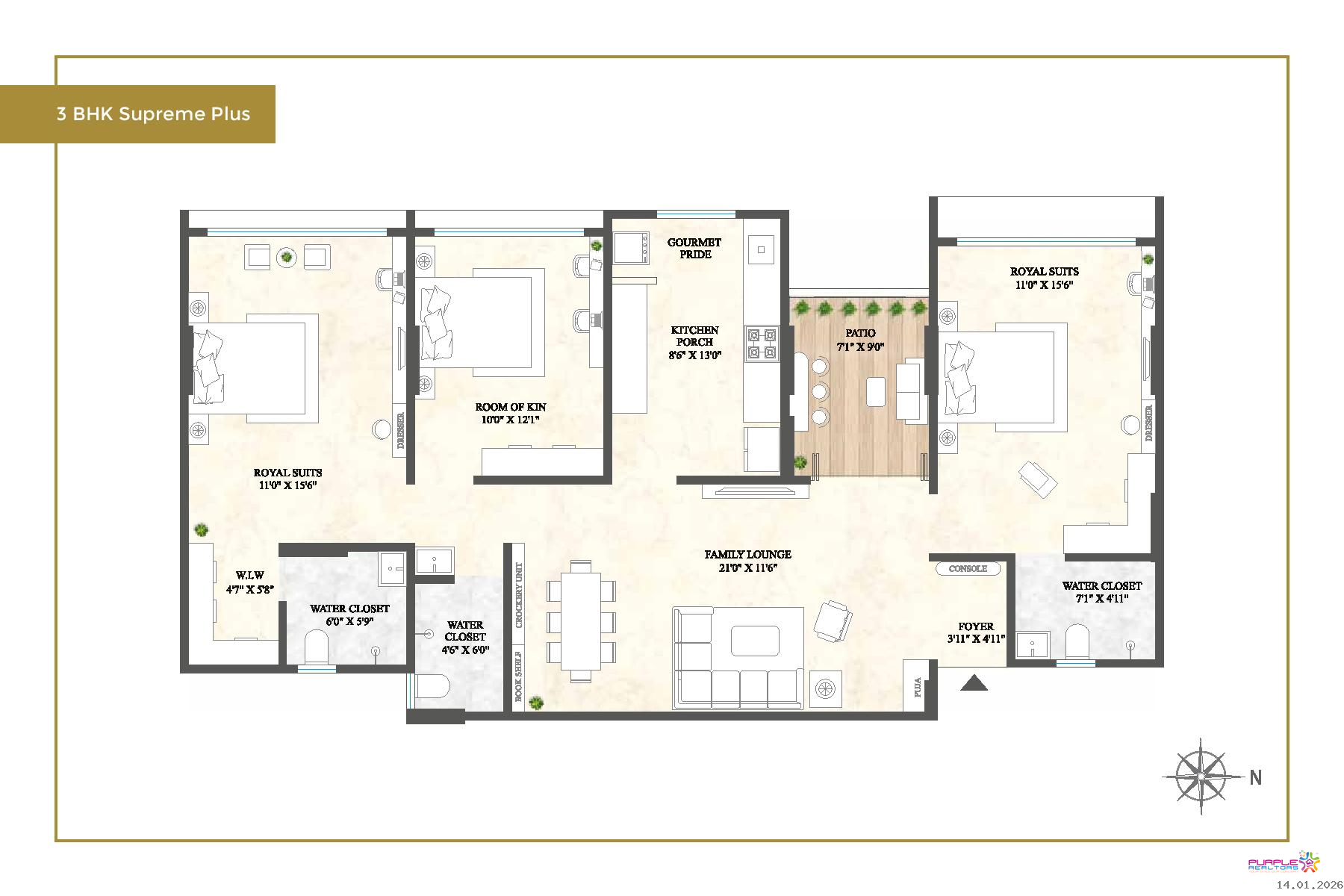 3 BHK - Carpet 1006 to 1091 sqft - 1.41cr Onwards