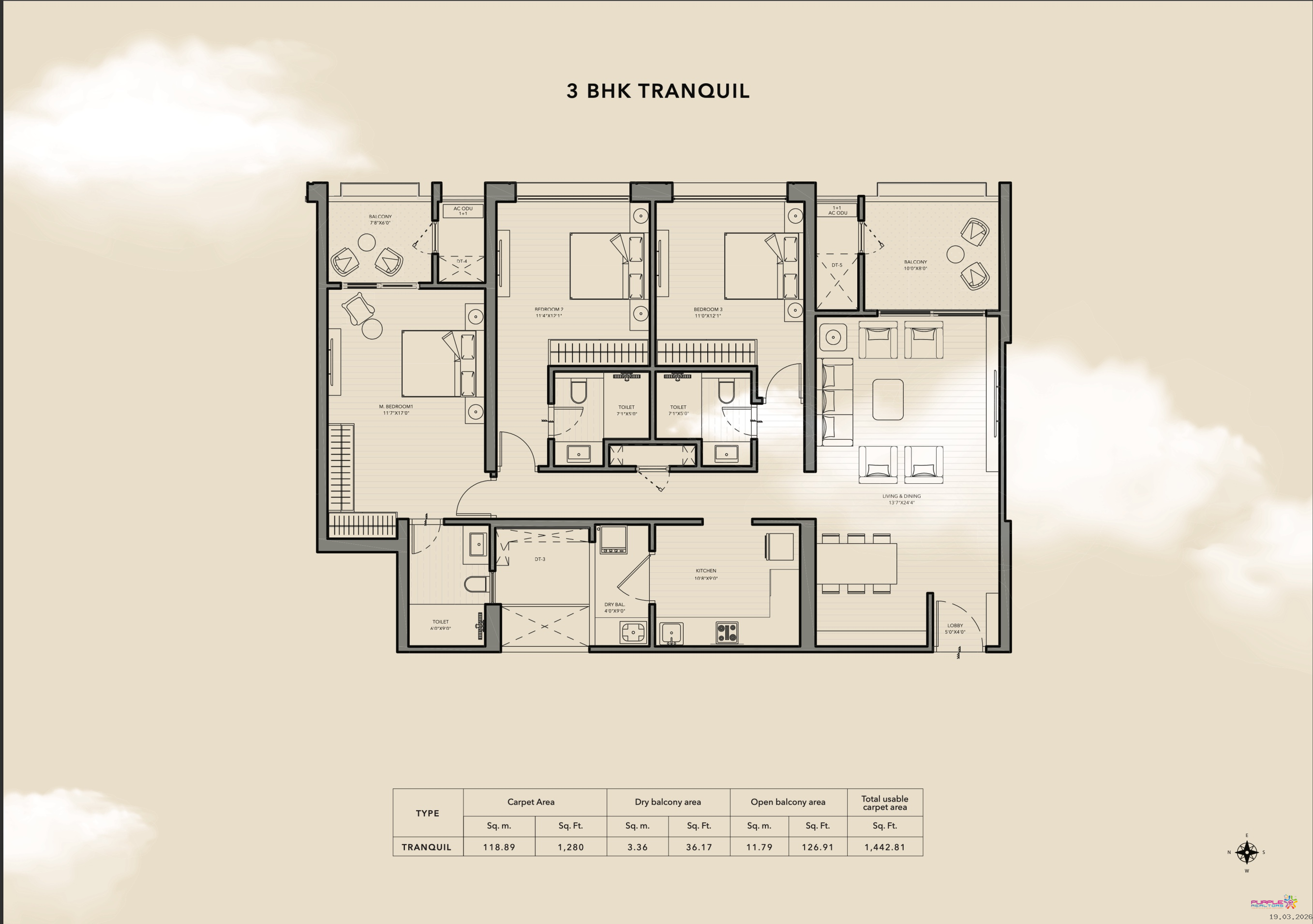 3 BHK Simplex - Tranquil - Carpet 1442 sqft - 2.31cr Onwards
