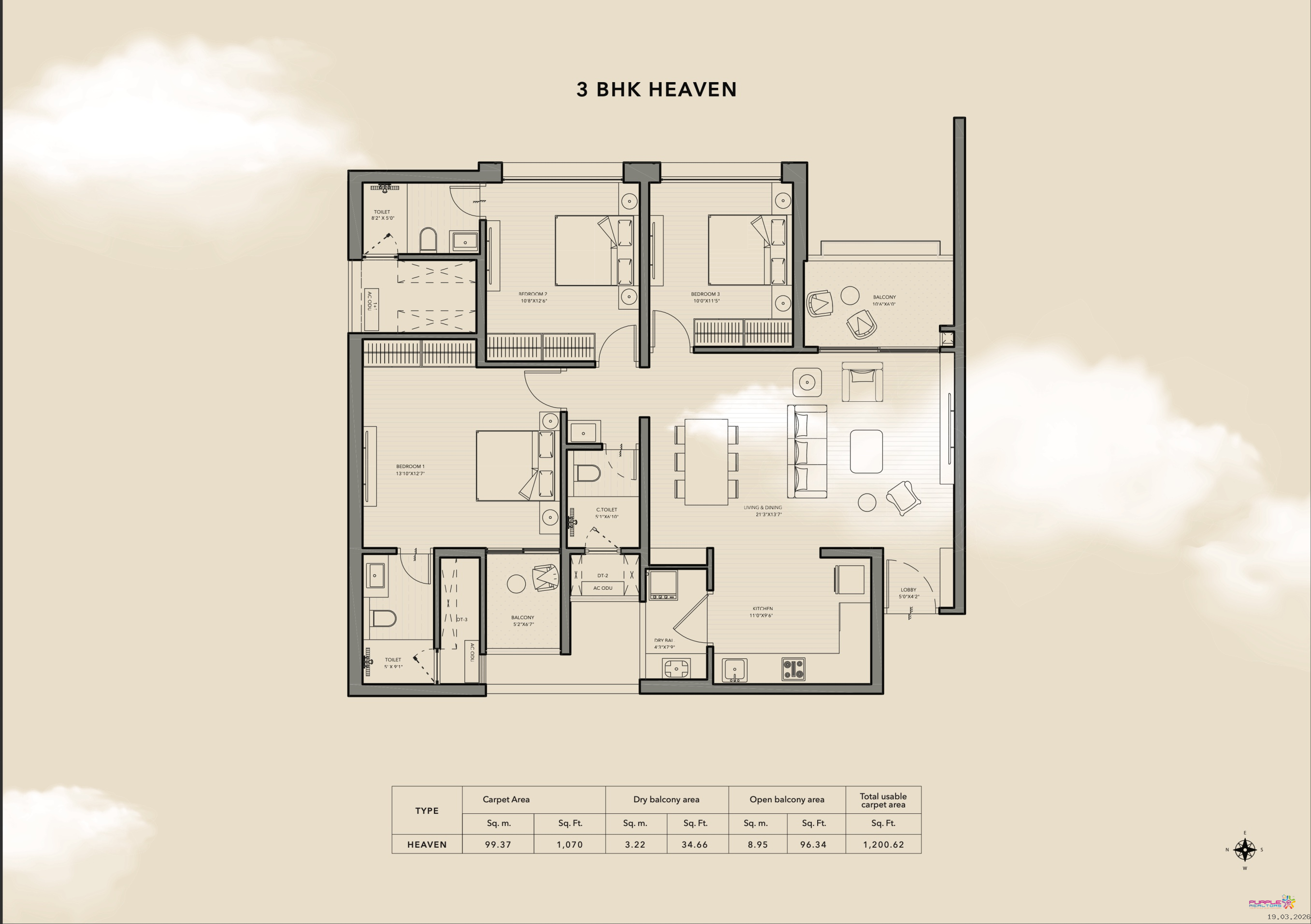 3 BHK Simplex - Heaven - Carpet 1201 sqft - 1.94cr Onwards