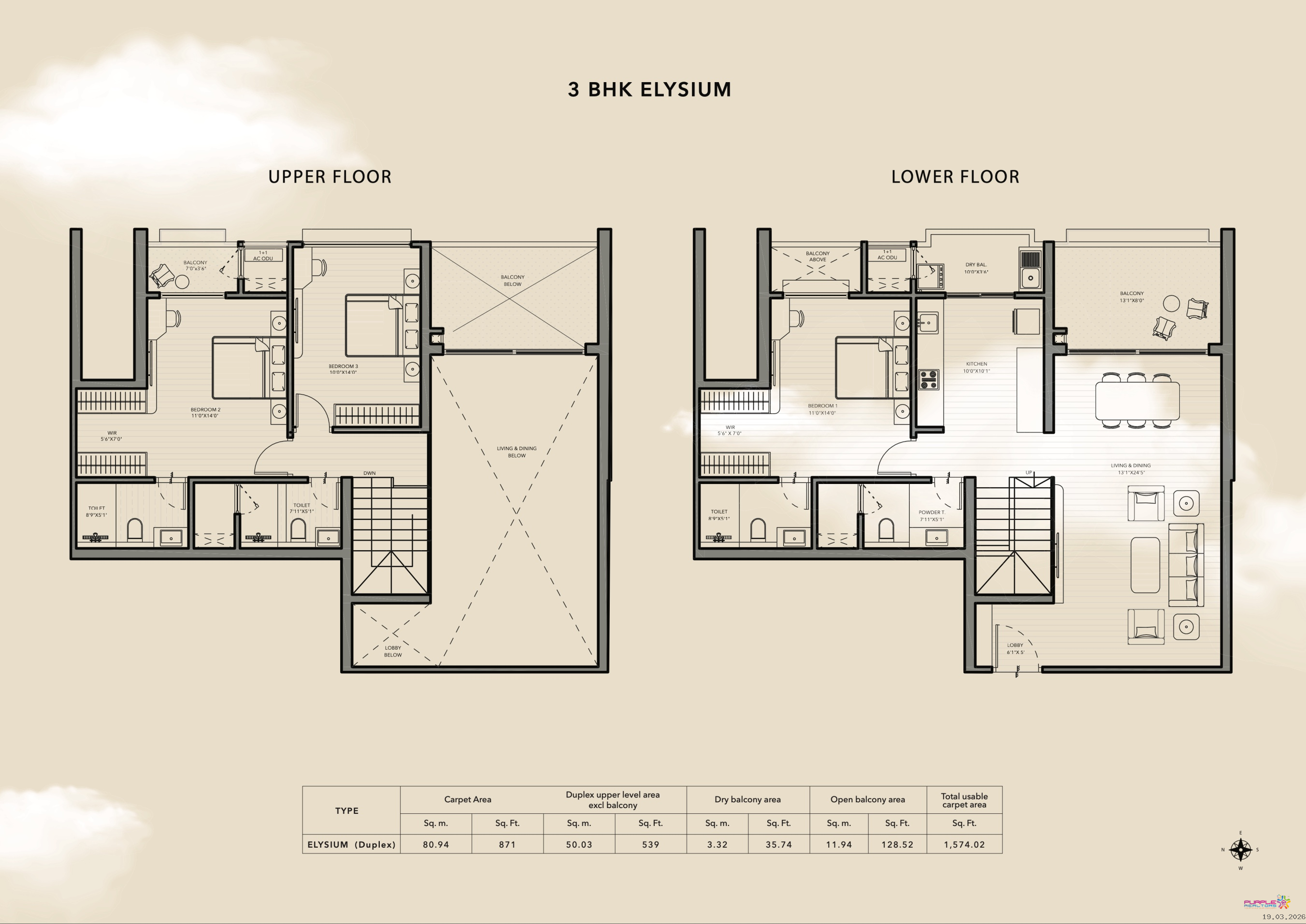 3 BHK Duplex - Elysium - Carpet 1574 sqft - On Request
